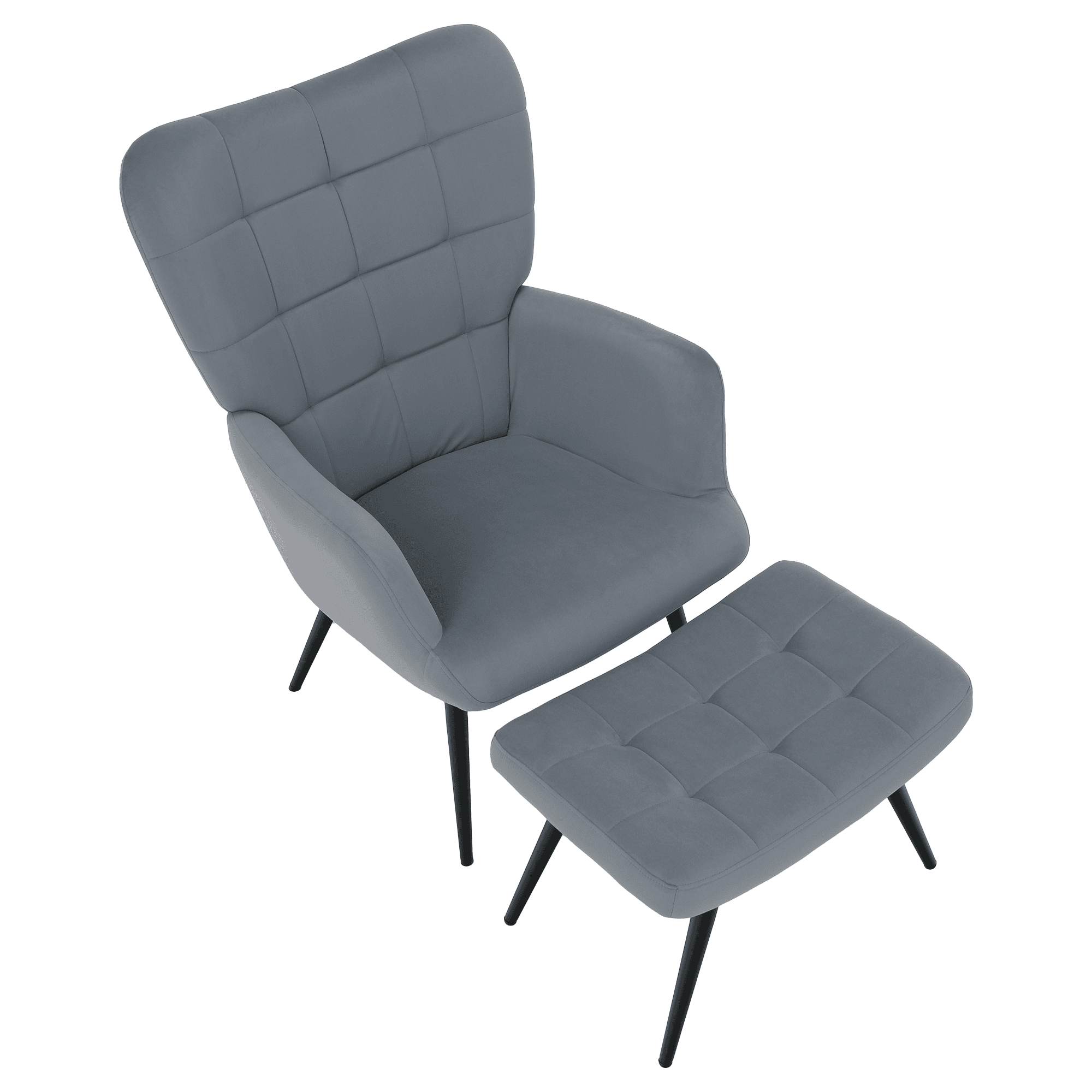 Fotoliu cu suport pentru picioare, ţesătură Velvet gri/negru, HABEN