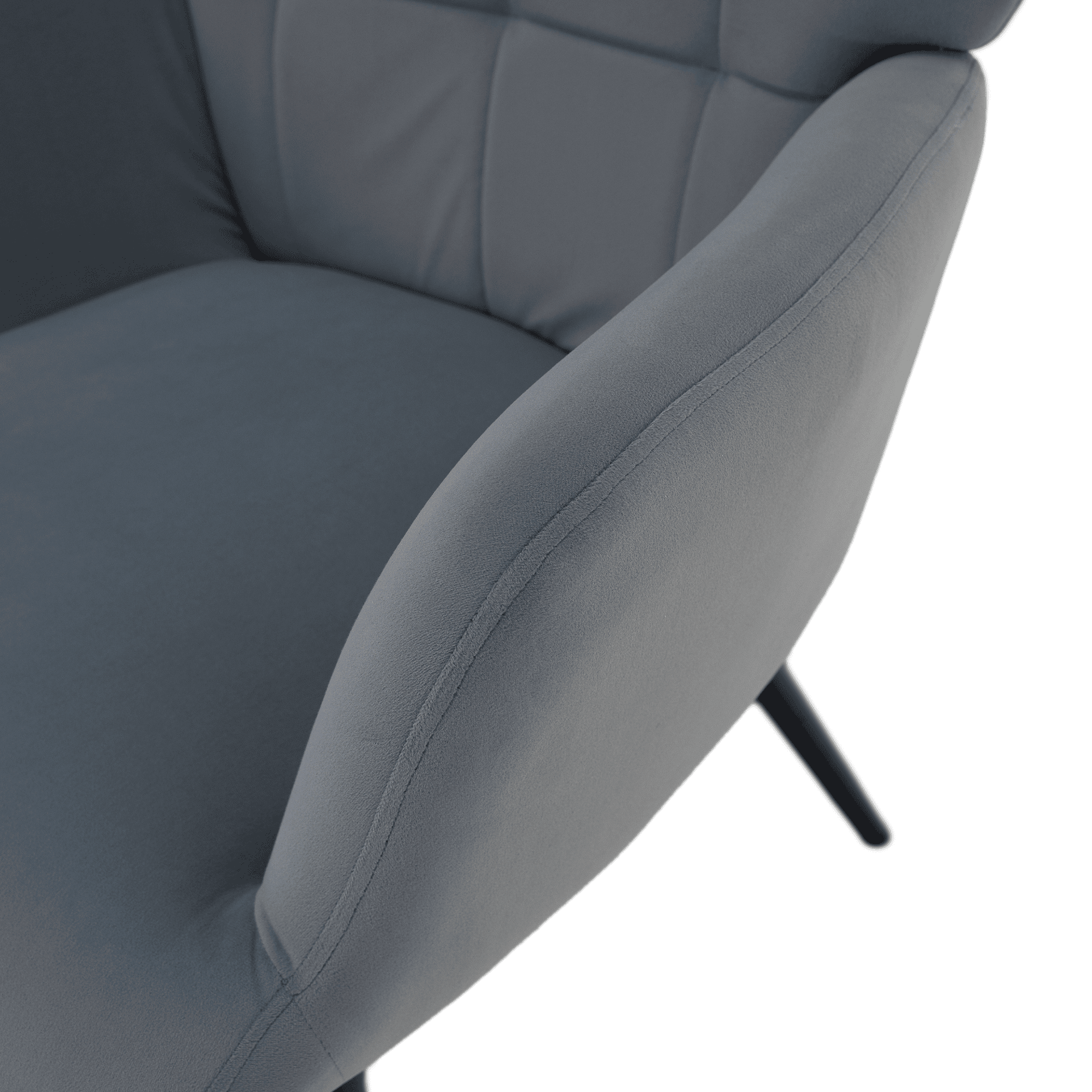 Material: ţesătură Velvet 51/ metal Rezistenţa ţesăturii la frecare conform testului Martindale: 95 000 de cicluri de frecare Culoare: gri/negru Dimensiunile fotoliului (Lxlxh): 70x78x97 cm Înălţimea părţii de şezut: 46 cm Adâncimea părţii de şezut: 53 cm Dimensiunile bazei (Lxlxh): 56,5x40x39 cm Picioarele de la supportul de picioare sunt reglabile pe înălţime Portanţa fotoliului: 90 kg Portanţa suportului pentru picioare: 80 kg Livrat dezasamblat