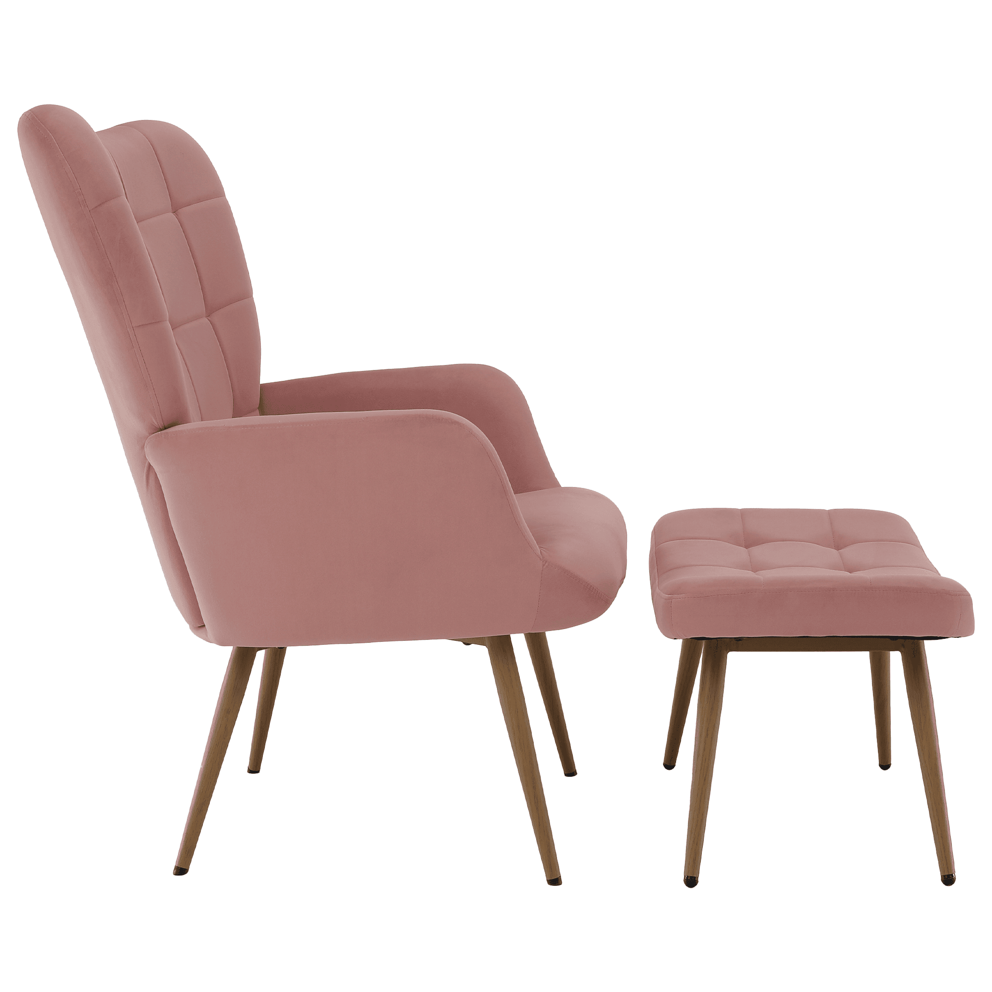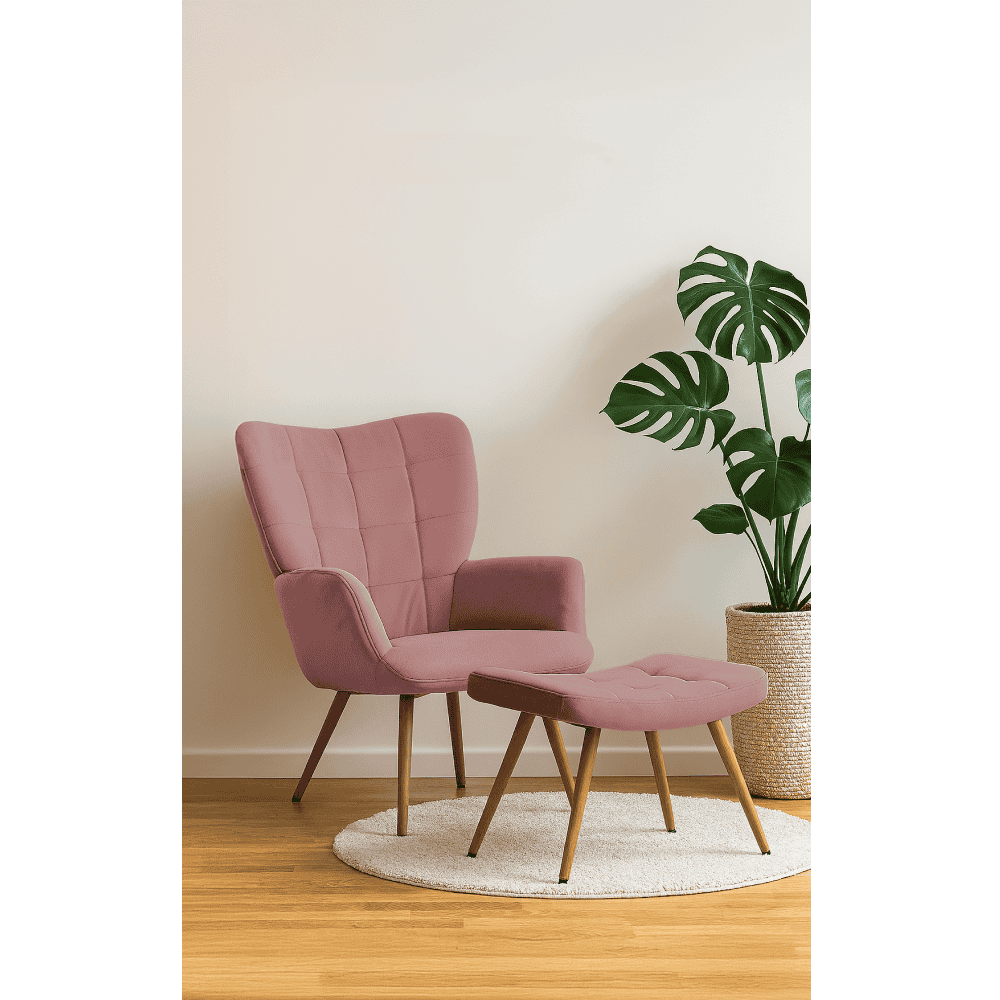 Fotoliu cu suport pentru picioare, ţesătură Velvet roz/stejar, HABEN
