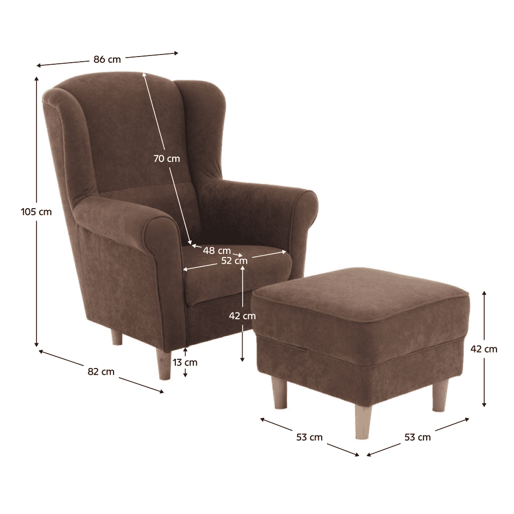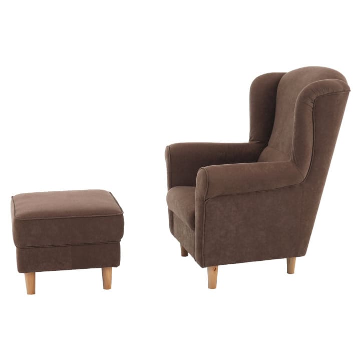 Fotoliu cu taburet, material maro, ASTRID