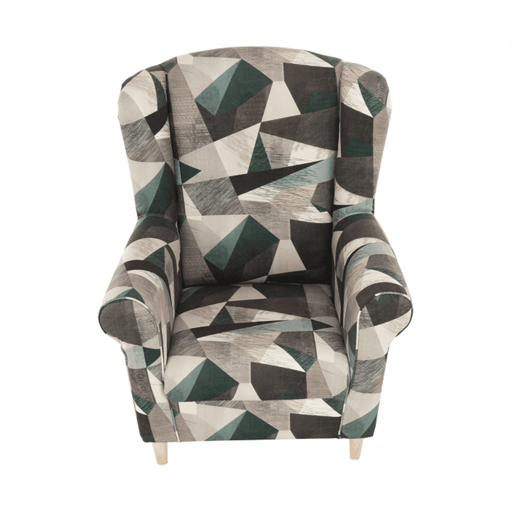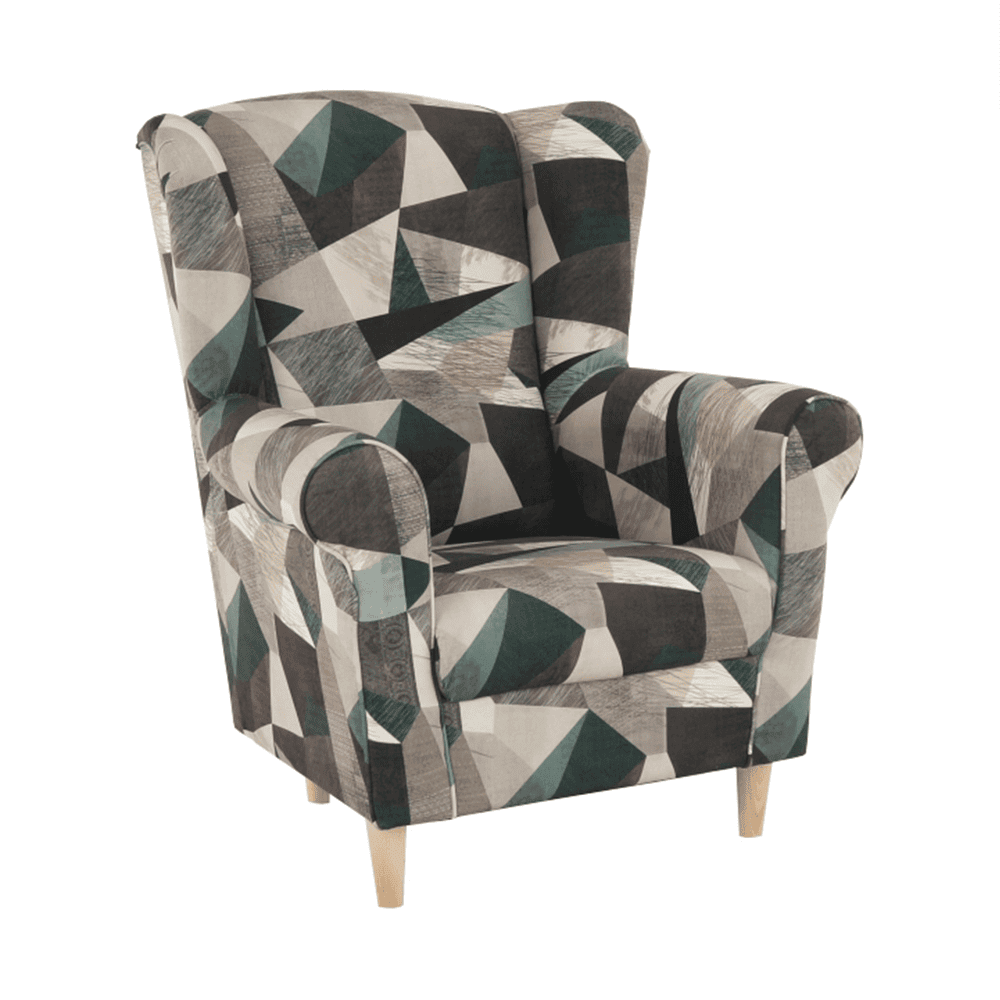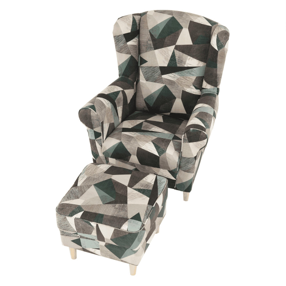 Fotoliu cu taburet, material maro-verde cu model, ASTRID