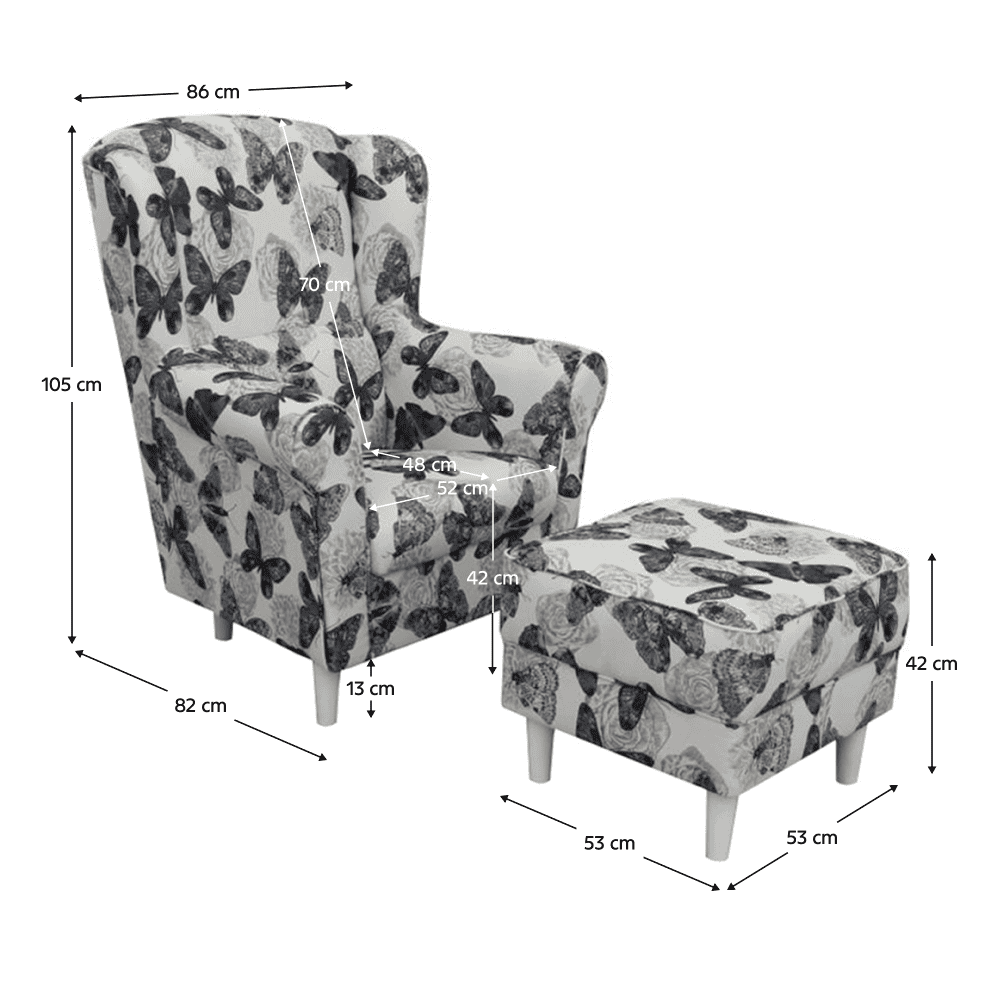 Fotoliu cu taburet, material textil imprimeu fluturi 1, ASTRID
