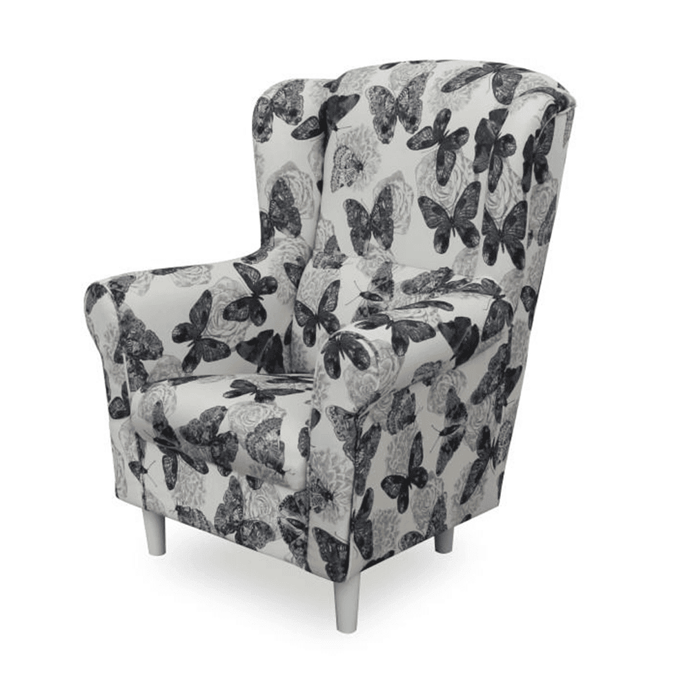 Model: material textil imprimeu fluturi 1, picioare din lemn de culoare albă,