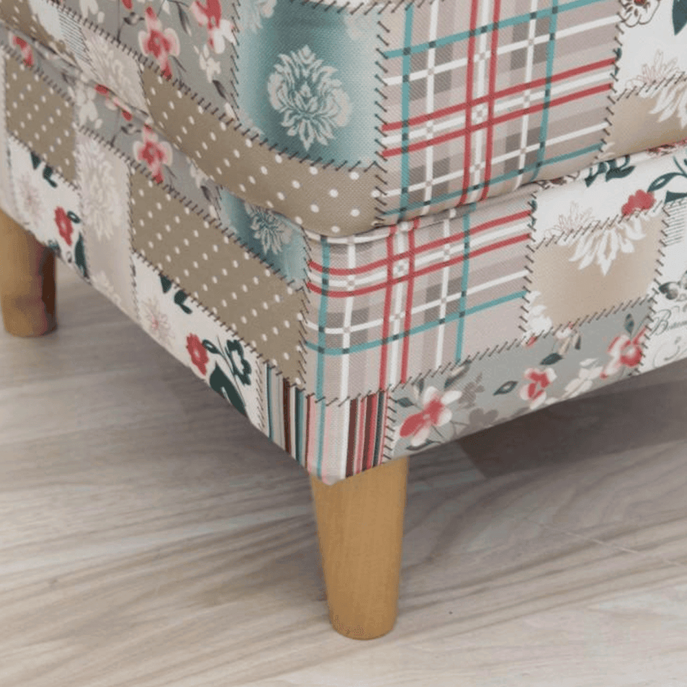 Model: material textil în stilul patchwork Viorica 1, picioare din lemn în finisaj fag,