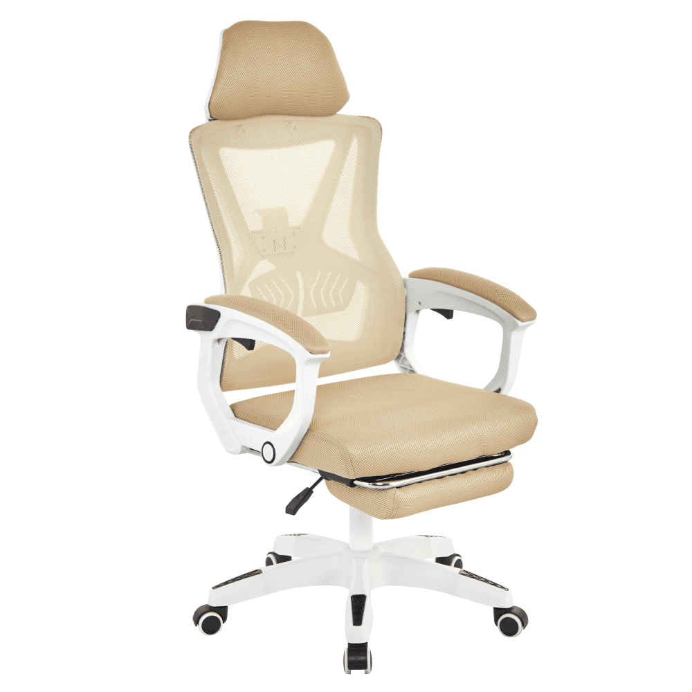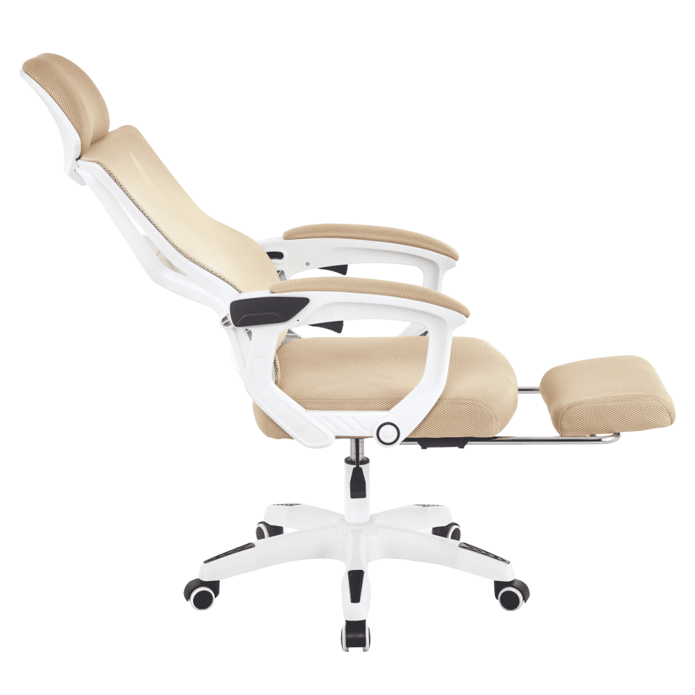 Material: plasă/plastic Rezistenţa ţesăturii la frecare conform testului Martindale: 90 000 de cicluri de frecare Culoare: bej/albă Dimensiuni (lxAxh): 59x63x112-122 cm Înălţimea părţii de şezu: 41-51 cm Lăţime scaun: 49 cm Adâncimea părţii de şezut: 48 cm Înălţime spătar: 73 cm Lăţime spătar: 48 cm Înălţime reglabilă a părţii de şezu Cotiere tapiţate Suport pentru picioare extensibil Spătar reglabil Reglare rigiditate lombară Mecanism de balansare Roţi universale Potrivite pentru podele dure şi moi Bază cu cinci braţe Portanţă: 150 kg Livrat dezasamblat