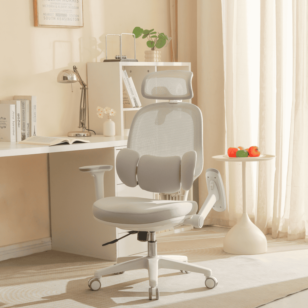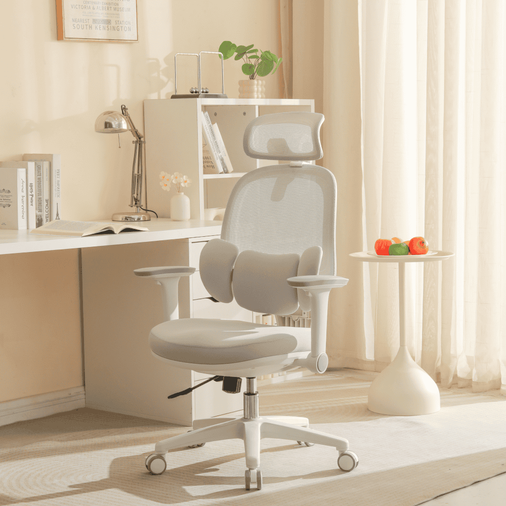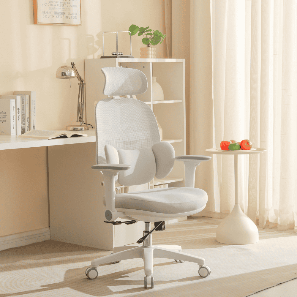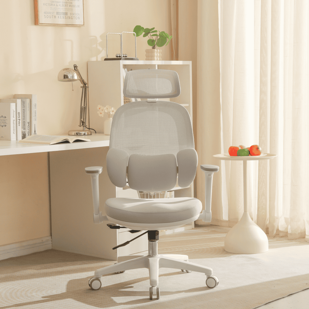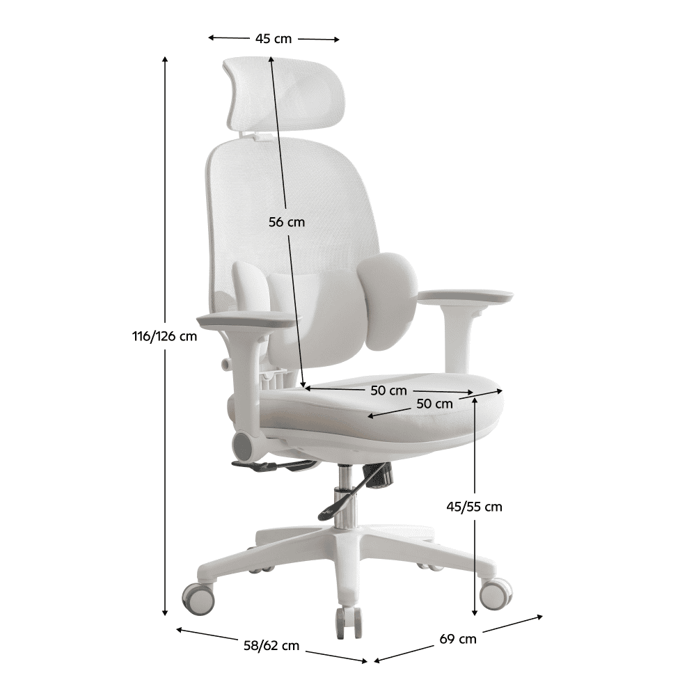 Material: plasă/ţesătură/plastic Rezistenţa plasei conform testului Martindale: 90 000 de cicluri de frecare Rezistenţa ţesăturii conform testului Martindale: 80 000 abraziuni Culoare: gri/albă Dimensiuni (lxAxh): 69×58-62×116-126 cm Înălţimea părţii de şezut: 45-55 cm Adâncimea părţii de şezut: 50 cm Lăţimea părţii de şezut: 50 cm Lăţime spătar: 45 cm Înălţime spătar: 56 cm Portanţă: Scaun rotativ 120 kg Suport lombar reglabil cu blocare Înălţime reglabilă a părţii de şedere Adâncime reglabilă a şezutului Funcţie de balansare Cotiere 4D Cotiere rabatabile Cotiere reglabile pe înălţime Cotiere reglabile pe adâncime Rotirea cotierelor în lateral Înălţime reglabilă a tetierei Unghi reglabil al tetierei şezut confortabil şi moale Roţi universale Roţile sunt potrivite pentru podele moi şi dure Practic Caracteristici ergonomice Livrat dezasamblat