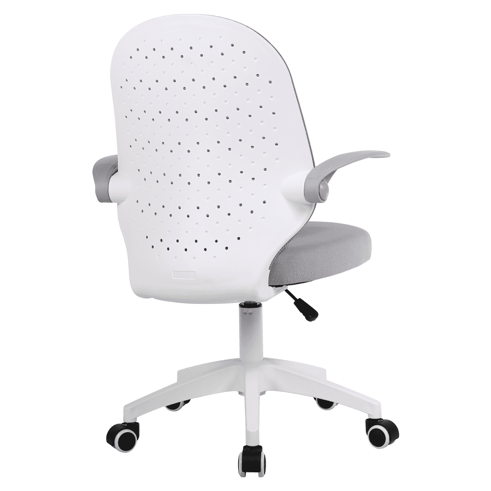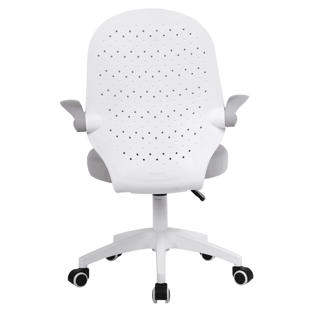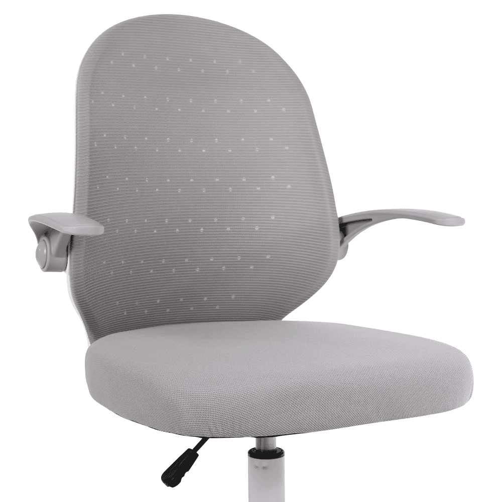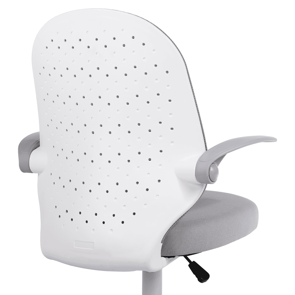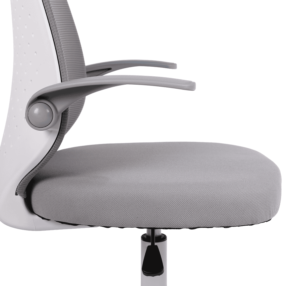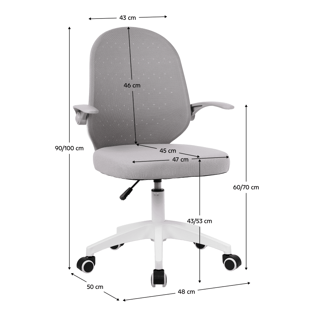 Material: plasă/plastic Rezistenţa ţesăturii la frecare conform testului Martindale: 15 000 de cicluri de frecare Culoare: gri/albă Dimensiuni (lxAxh): 48x50x90-100 cm înălţimea părţii de şezut: 43-53 cm Lăţimea părţii de şezut: 47 cm Adâncimea părţii de şezut: 45 cm Înălţime spătar: 46 cm Lăţime spătar: 43 cm Portanţă: 100 kg Înălţime reglabilă a scaunului Cu cotiere Cotiere pliabile Înălţimea de la sol la cotieră: 60-70 cm Pivotant Roţi universale pivotante Potrivite pentru pardoseli dure şi moi Bază cu cinci braţe Livrat dezasamblat