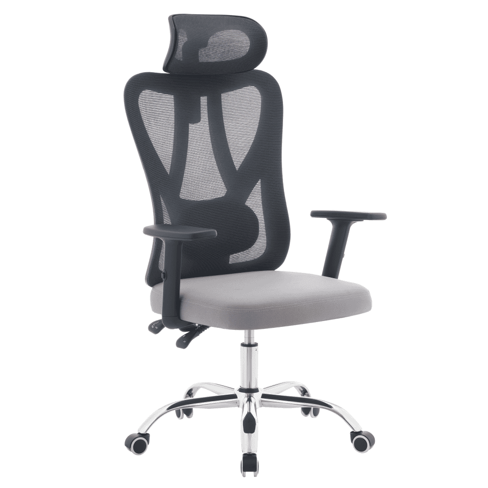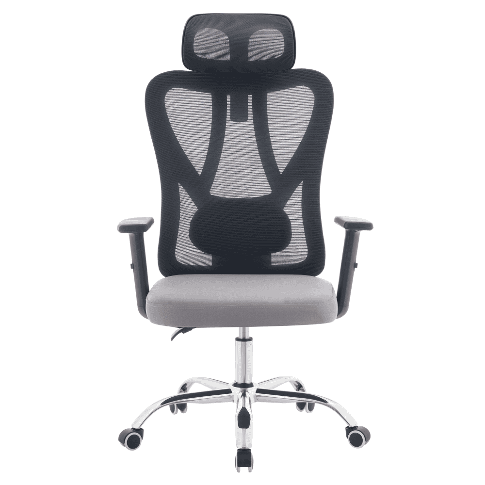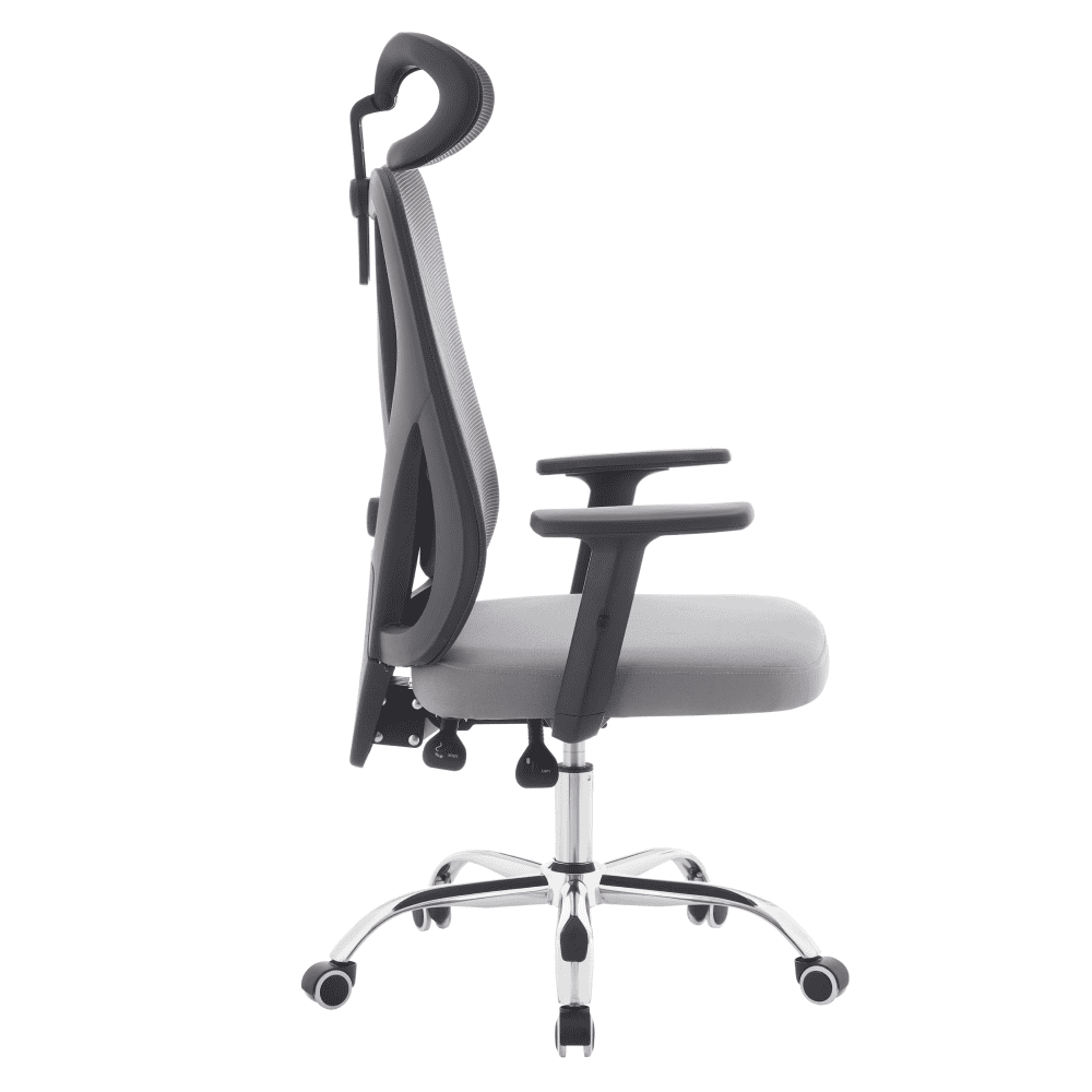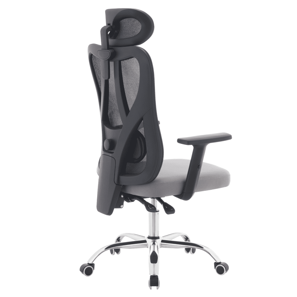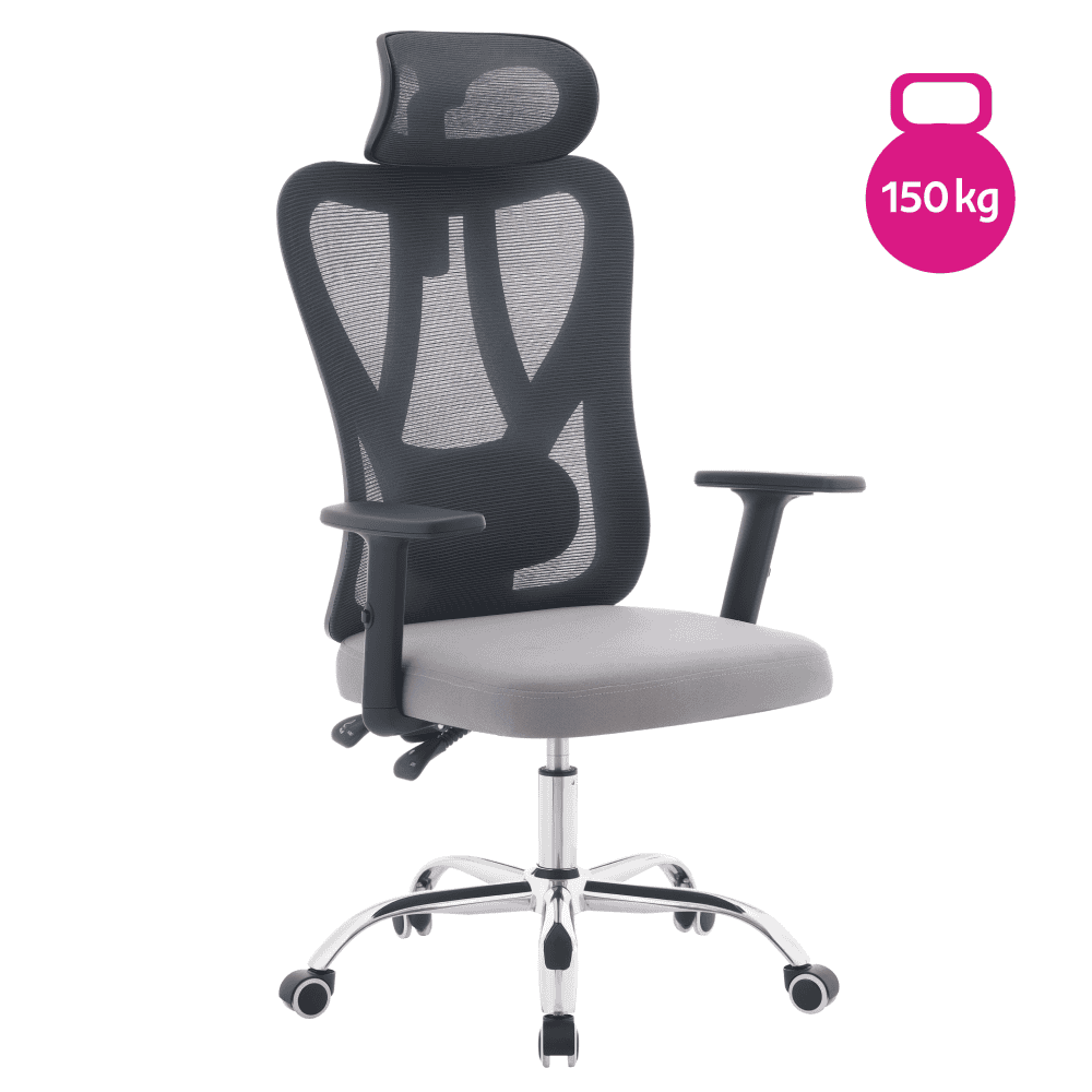 Material: plasă/ţesătură/plastic/metal Rezistenţa plasei conform testului Martindale: 90 000 de cicluri de frecare Rezistenţa ţesăturii la frecare conform testului Martindale: 80 000 garnituri Culoare: gri închis/gri deschis/negru/crom Dimensiuni (lxAxh): 67x57x121-131 cm Înălţimea părţii de şezut: 43-53 cm Adâncimea părţii de şezut: 48 cm Lăţimea părţii de şezut: 46 cm Lăţime spătar: 52 cm Înălţime spătar: 79 cm Portanţă: 150 kg Funcţie de pivotare Funcţie de balansare Înălţime reglabilă a părţii de şedere Înălţime reglabilă a cotierei Partea lombară reglabilă Înălţime reglabilă a tetierei Unghi reglabil al tetierei Roţi universale Roţile sunt potrivite atât pentru podele moi, cât şi pentru podele dure Practic Caracteristici ergonomice practice Livrat dezasamblat