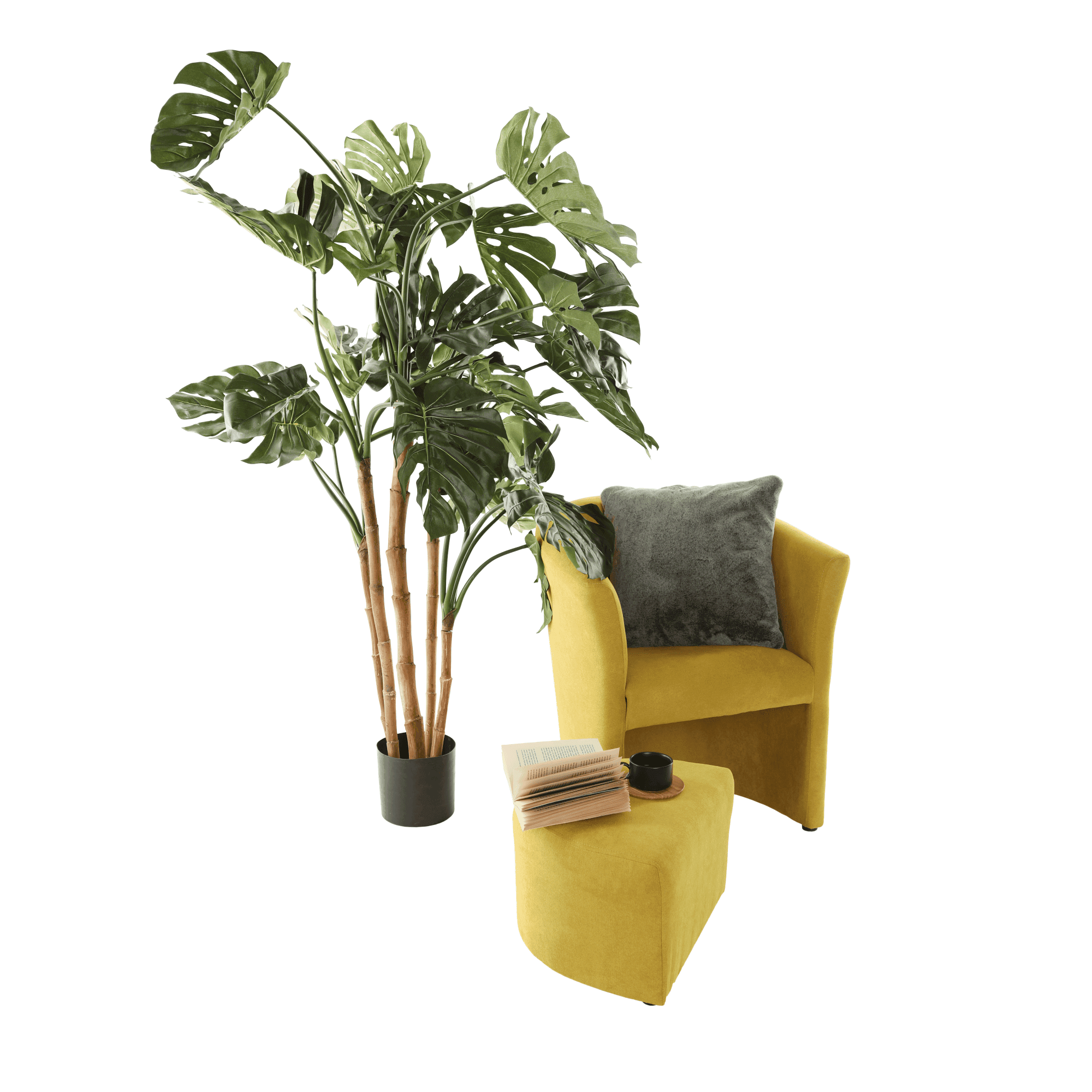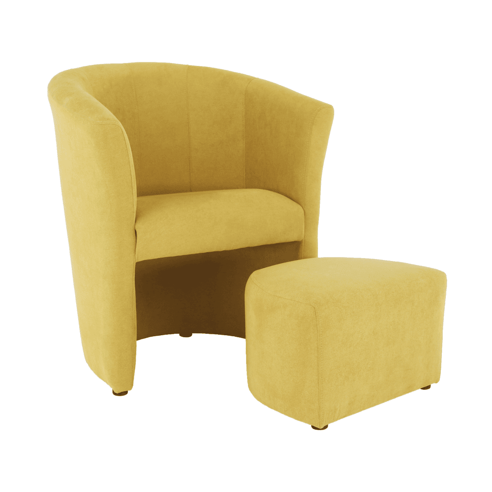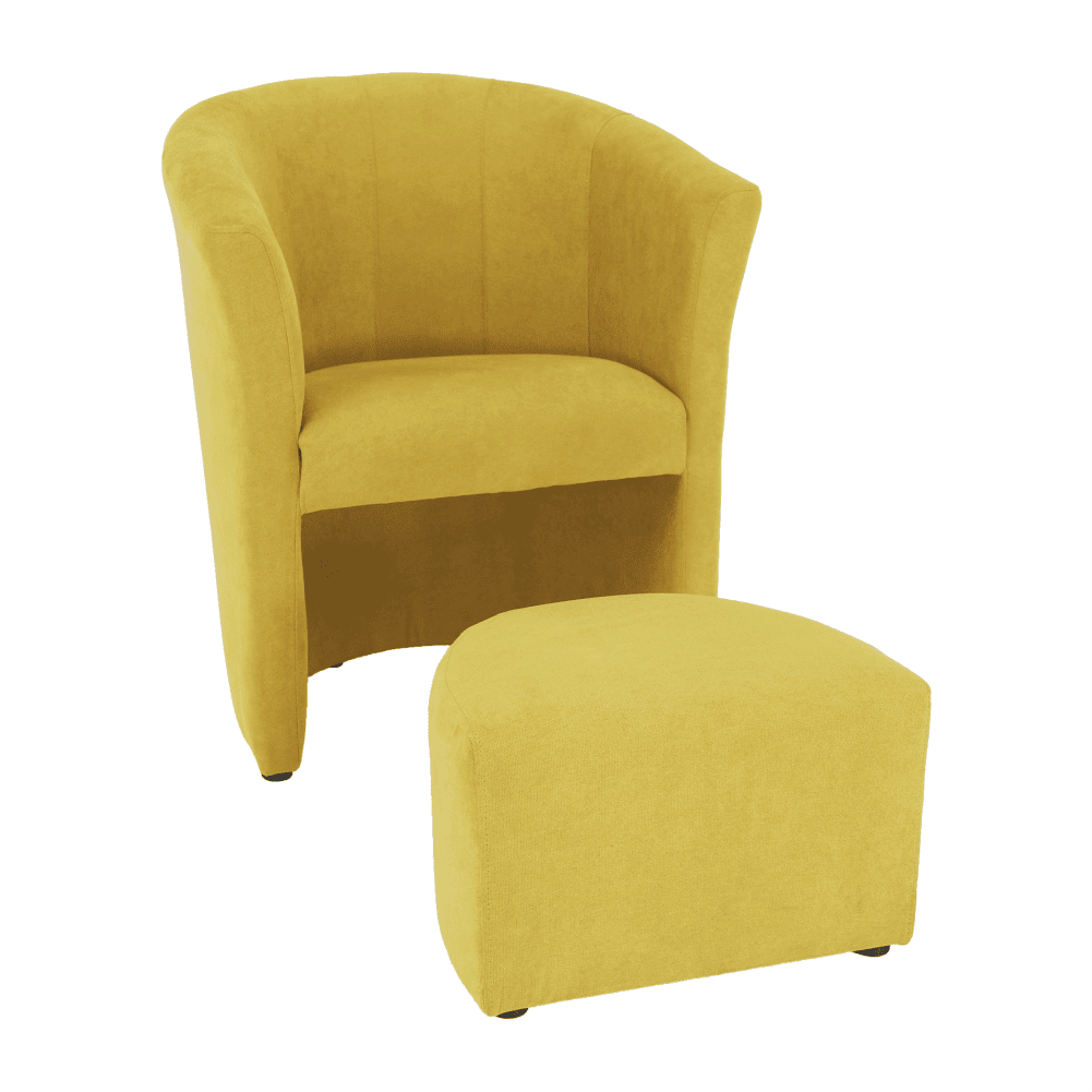 Fotoliu de club cu taburet, muştar, ROSE