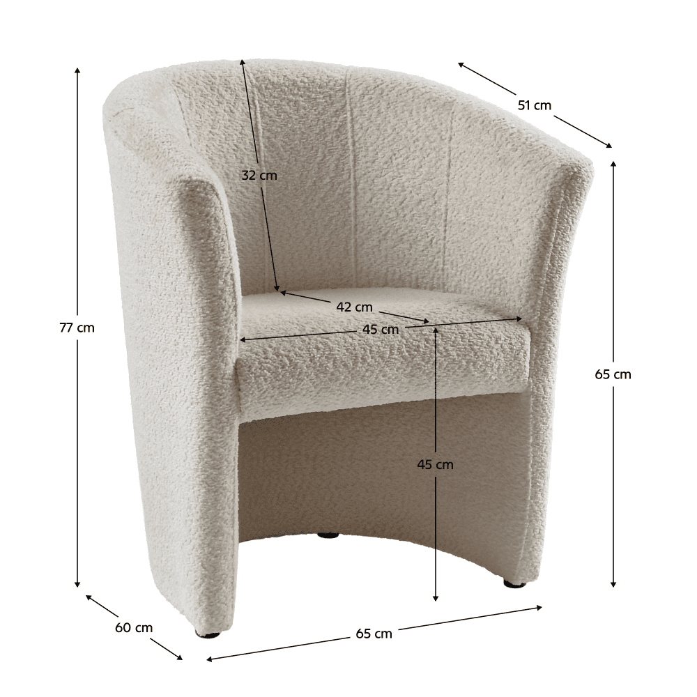 Fotoliu de club, material textil crem Coral, CUBA