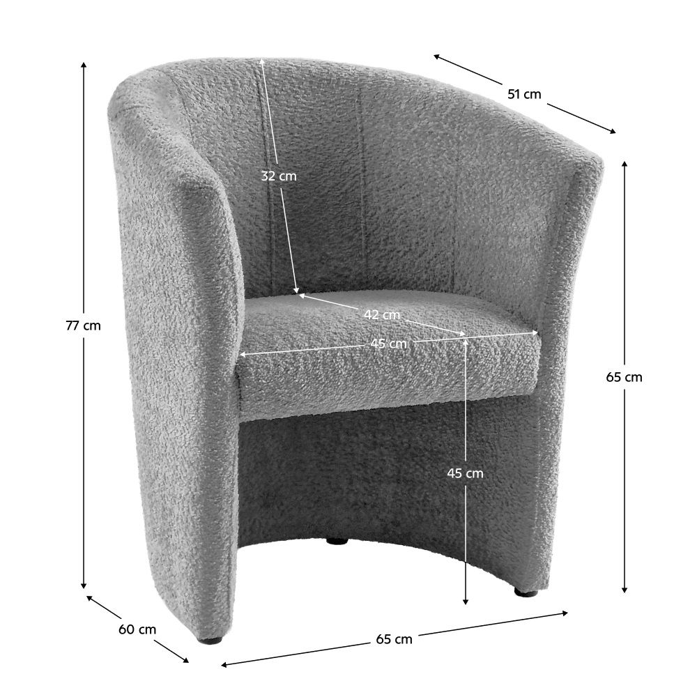 Fotoliu de club, material textil gri Coral, CUBA