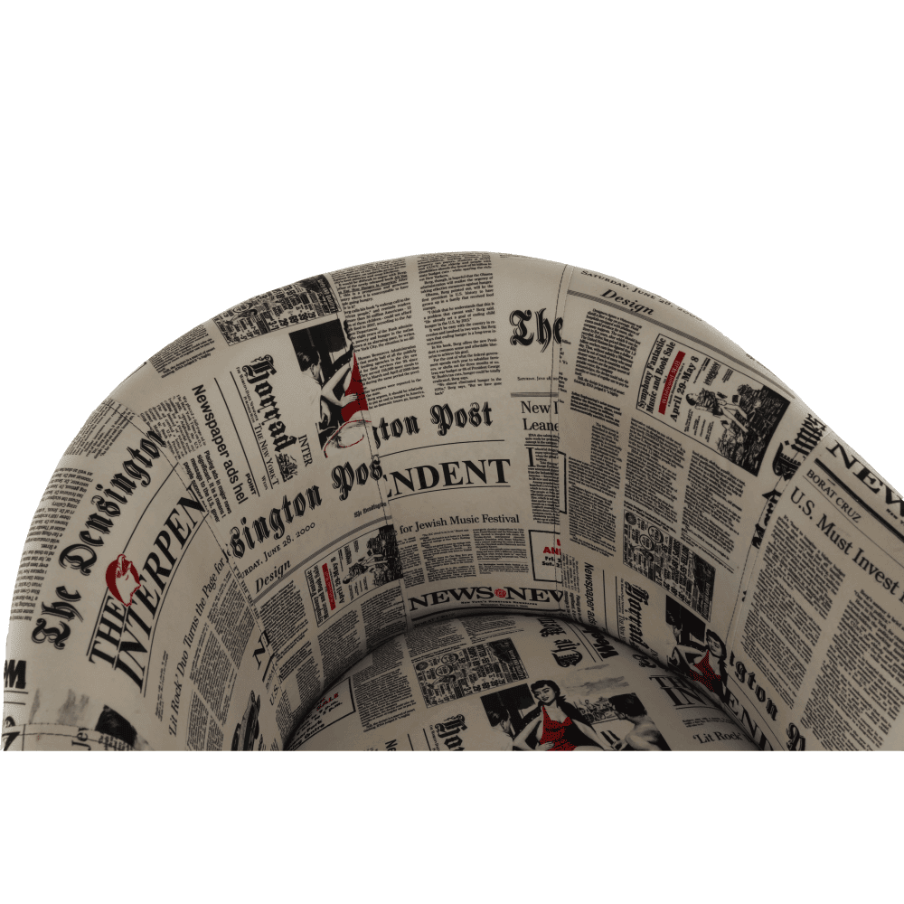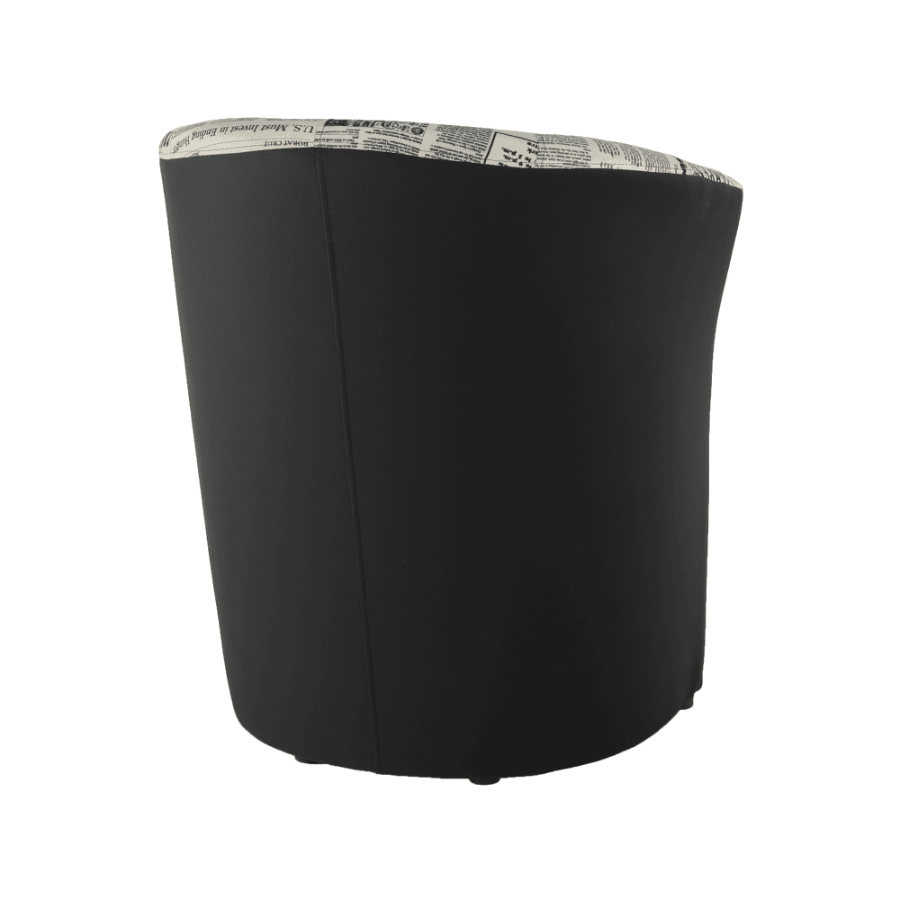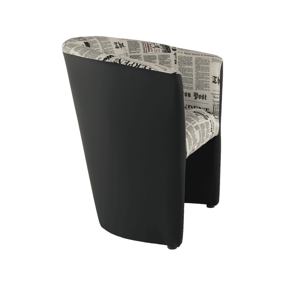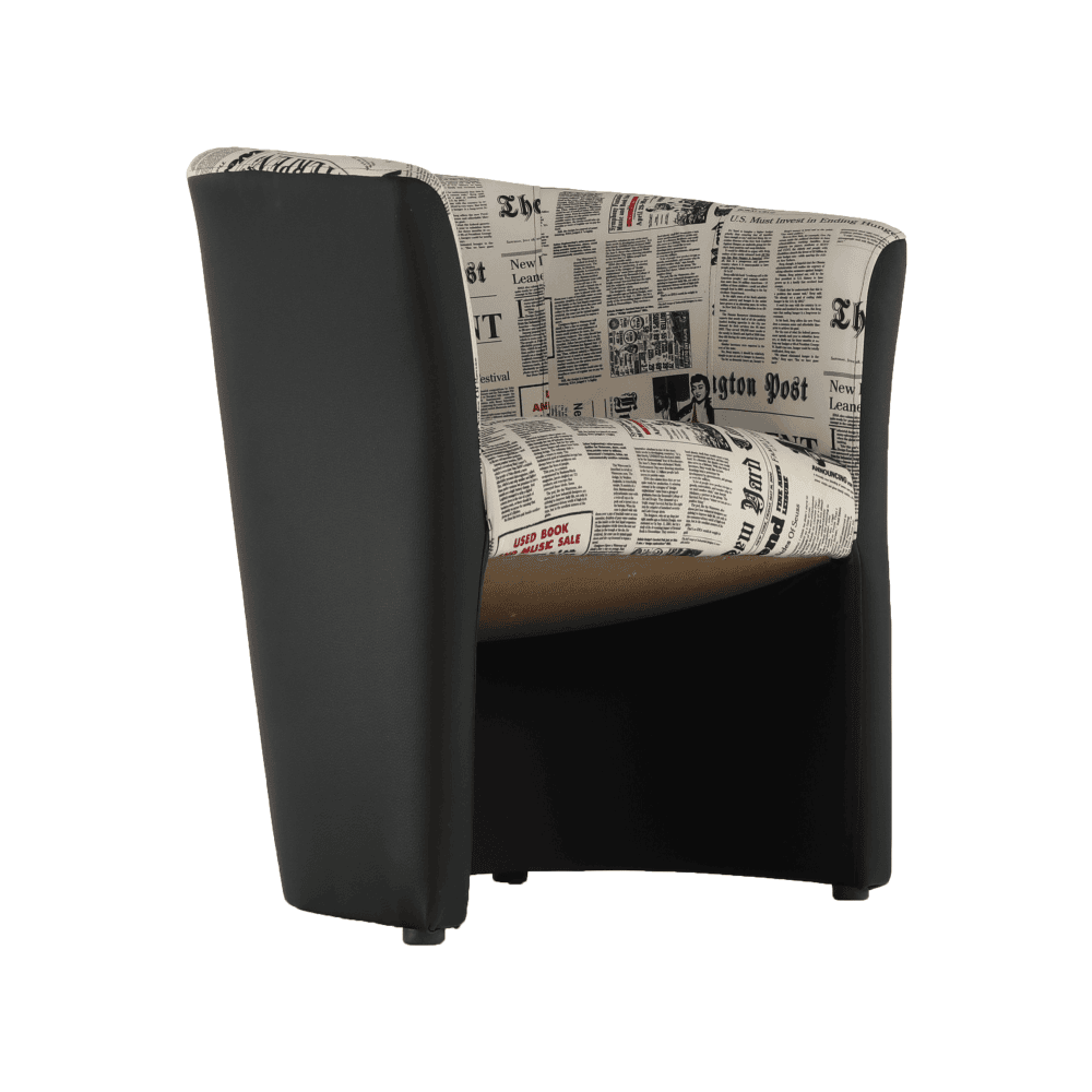 Fotoliu de club, piele ecologică neagră/material textil motiv ziare, CUBA