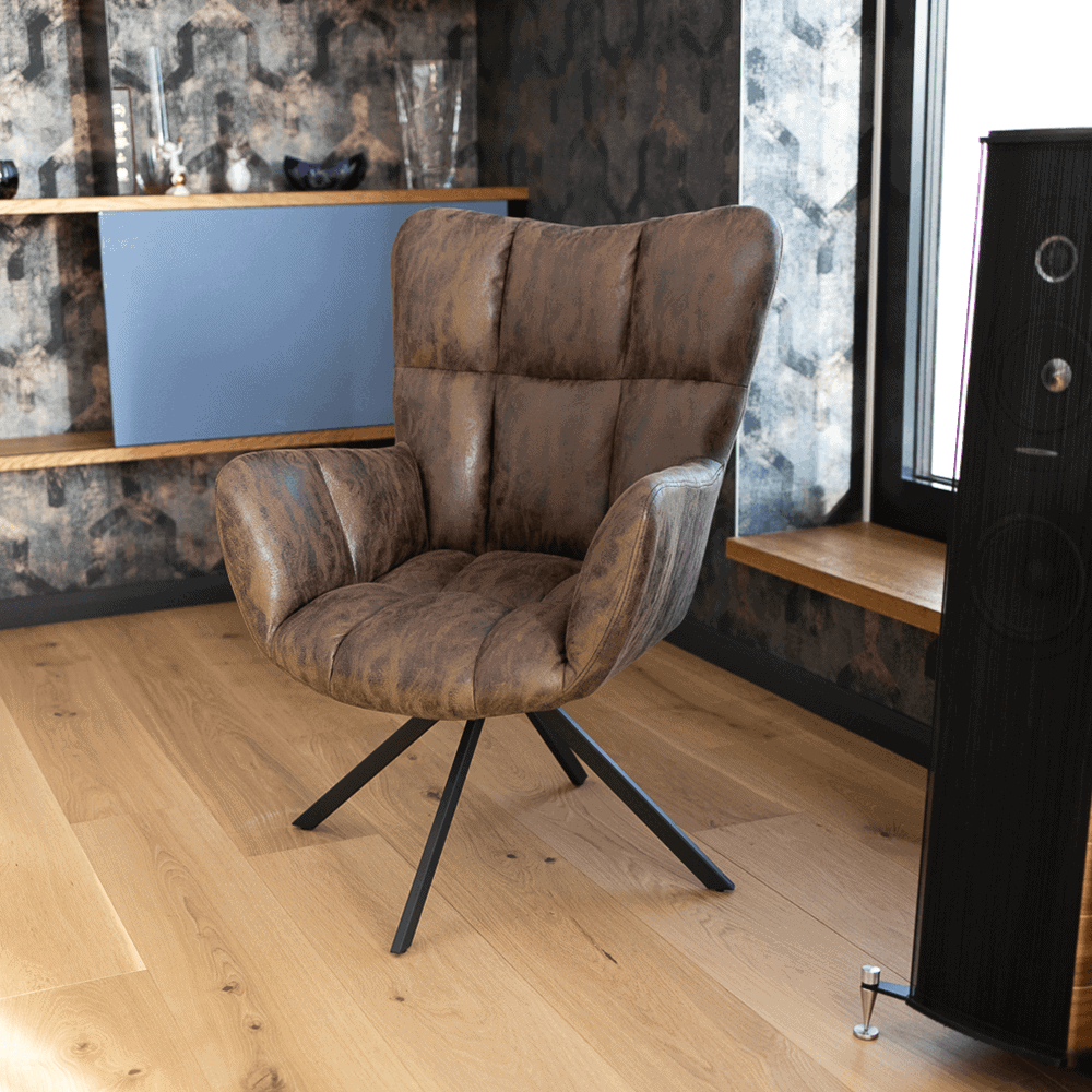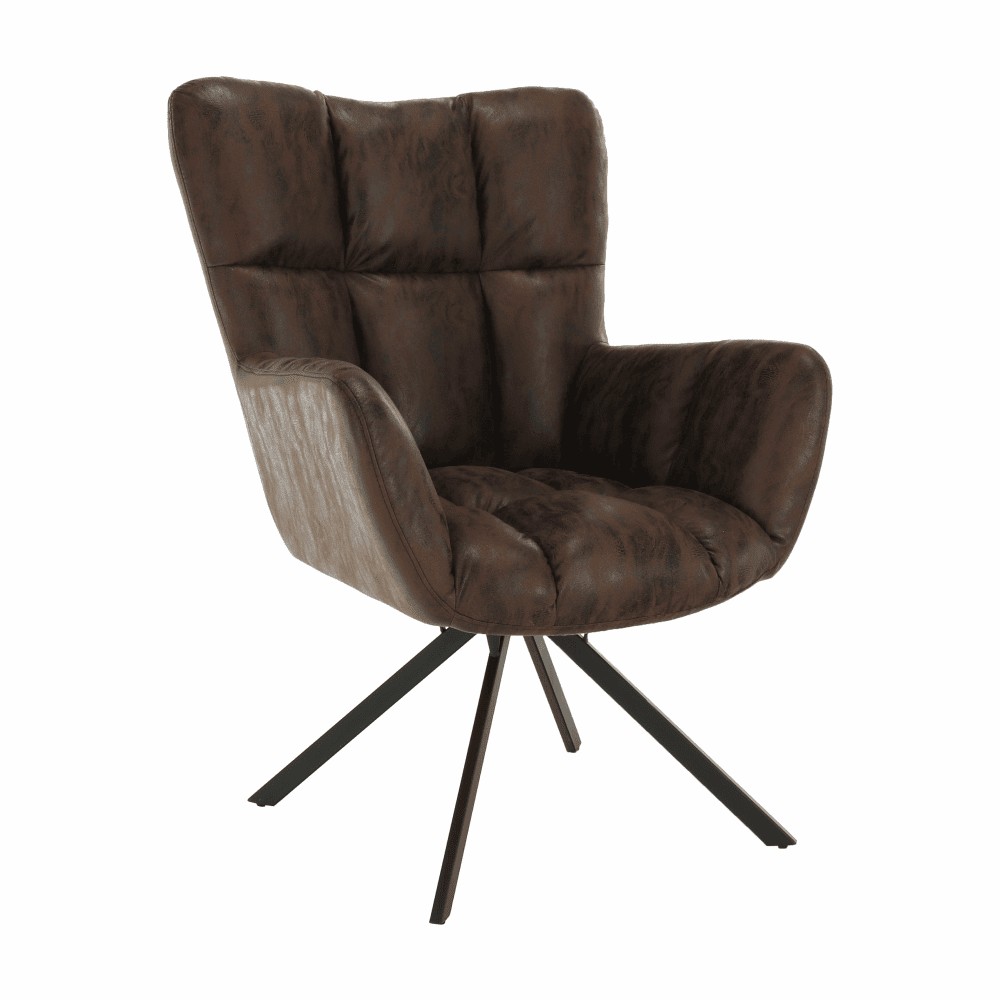 Fotoliu de design rotativ, maro ţesătură cu efect de piele întoarsă/negru, KOMODO