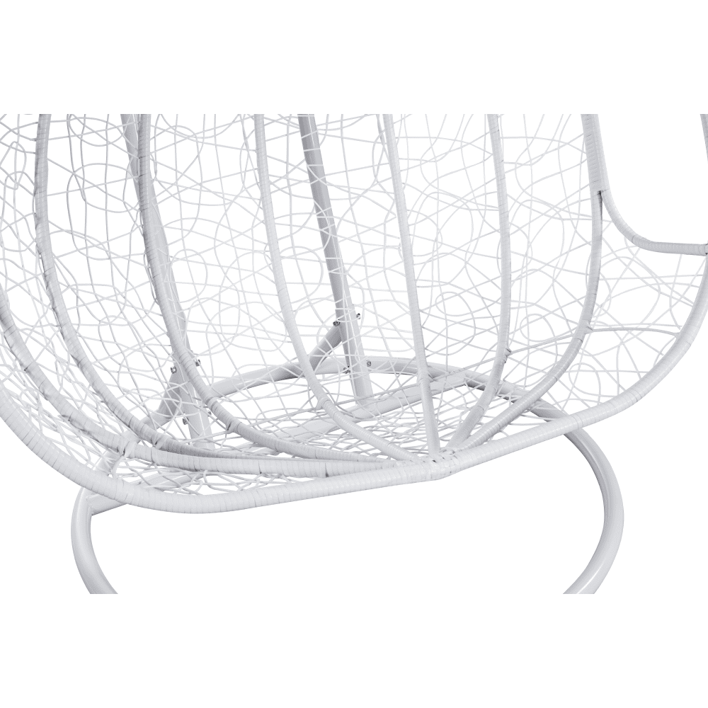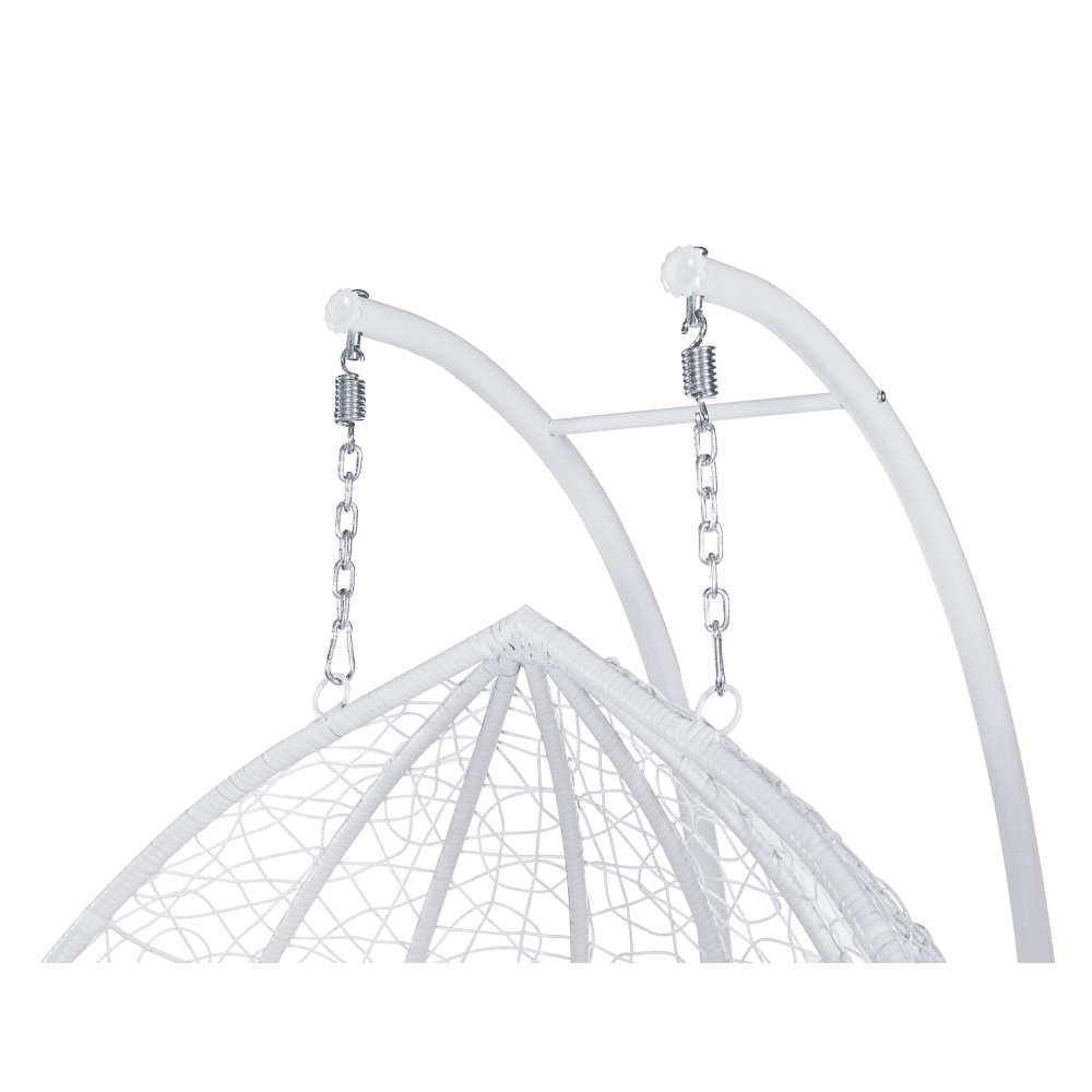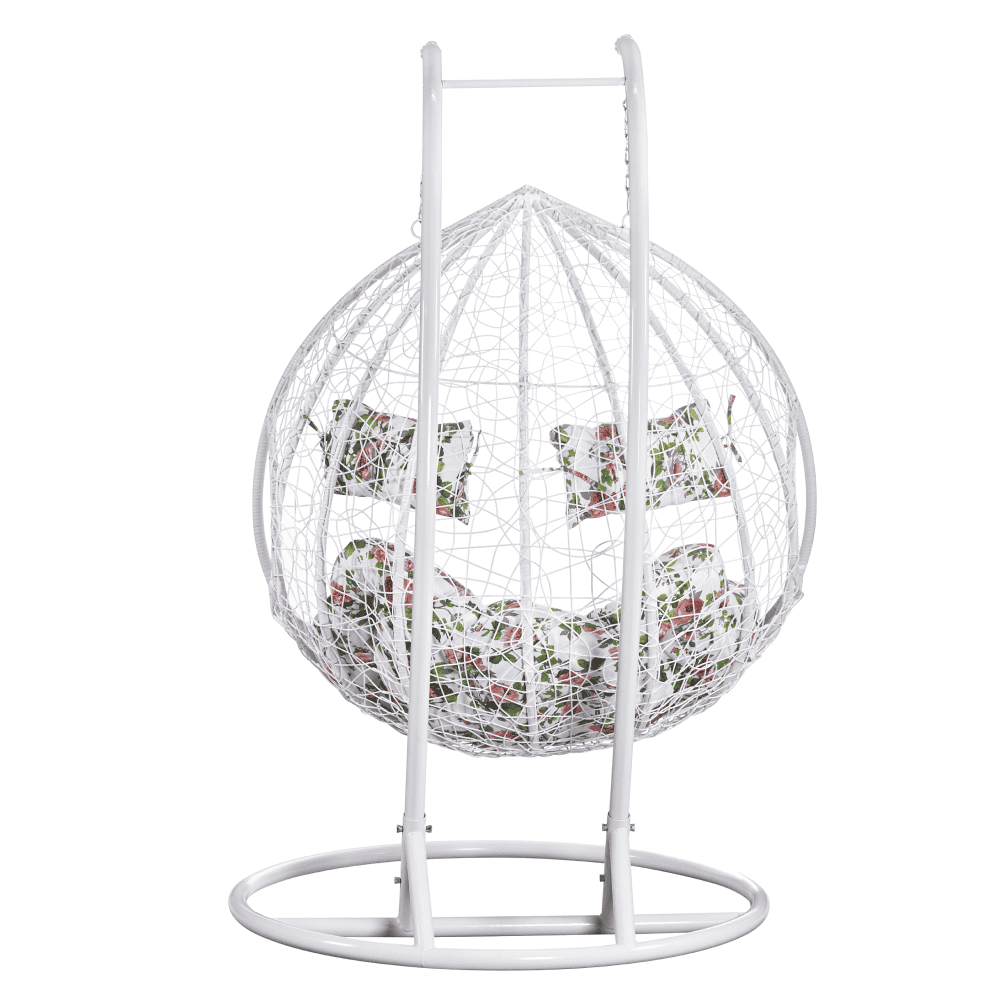 Material: oţel/ratan tehnic/ţesătură Rezistenţa ţesăturii la frecare conform testului Martindale: 95.000 de cicluri de frecare Culoare: alb/model floral Dimensiuni (Lxlxh): 132x118x195 cm Dimensiuni fotoliu (Lxlxh): 132x70x123 cm Portanţă: 180 cm Înălţimea părţii de şezut: 52 cm Adâncimea părţii de şezut: 70 cm În exterior vă recomandăm să protejaţi fotoliul cu o husă de protecţie sau prelată Potrivit atât pentru interior, cât şi pentru exterior Cu pernă Fotoliu dublu Suport inclus Feroneria pentru scaunul suspendat se află direct în cadrul cercului Livrat dezasamblat
