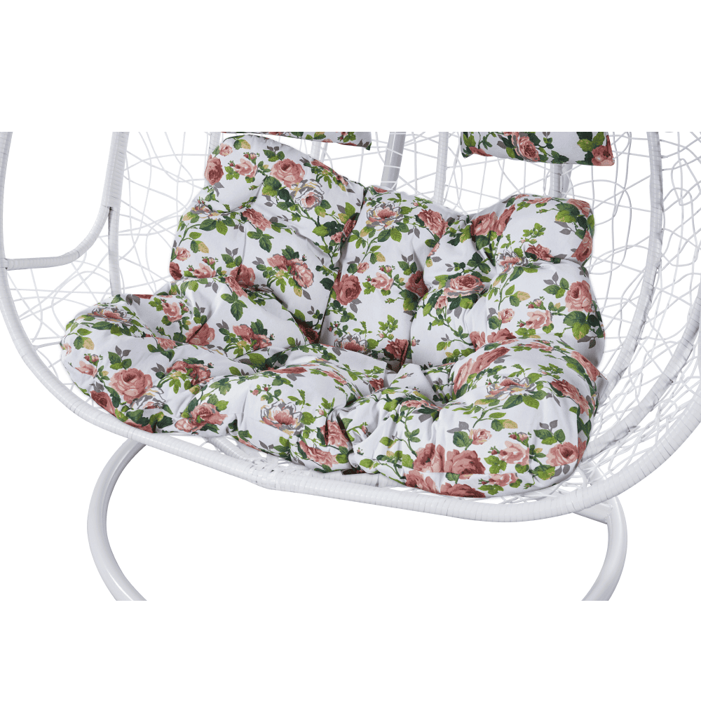 Fotoliu dublu suspendat, alb/model floral, DELIA