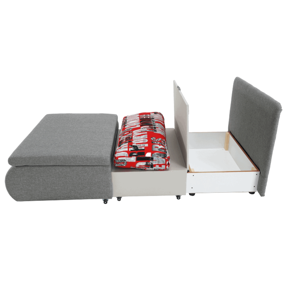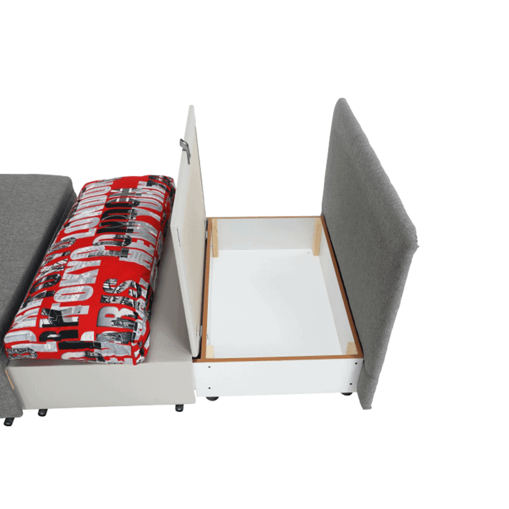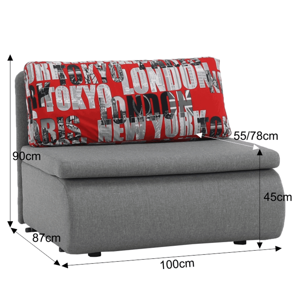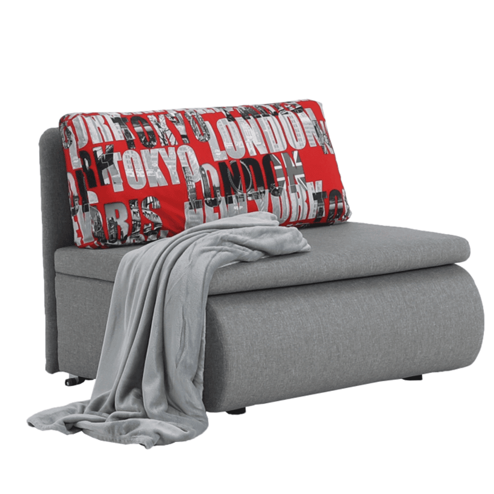 Fotoliu modern extensibil cu spaţiu de depozitare, material: Savana 21 gri/pernă Tokyo red,