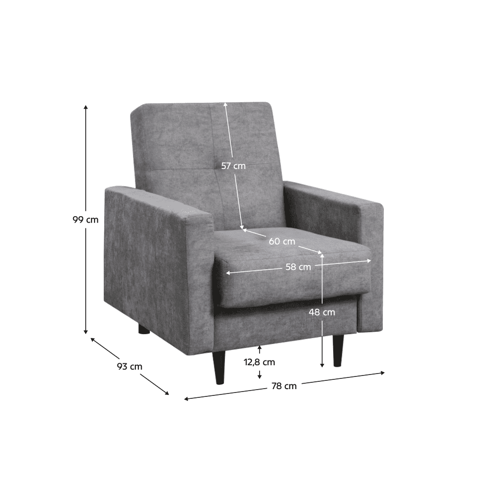 Material: ţesătură Enjoy 23 Rezistenţa ţesăturii conform testului Martindale: 45.000 de cicluri de frecare Culoare: gri Dimensiuni (LxAxÎ): 78x93x99 cm Înălţime scaun: 48 cm Adâncime scaun: 60 cm Lăţime scaun: 58 cm Înălţime spătar: 57 cm Picioare metalice Culoare picioare: neagră Înălţimea spaţiului inferior de la podea: 12,8 cm Umplutură: arcuri ondulate / spumă poliuretanică Capacitate de încărcare per persoană: 90 kg Tapiţat integral Livrat dezasamblat Posibilitatea de a alege dintre 8 nuanţe ale ţesăturii Enjoy la preţul de 1.355 Lei. Pentru comenzi personalizate este necesară plata unui avans de 20% din suma totală. După achitarea avansului, comanda dumneavoastră va intra în producţie. Termenul de livrare este de 6-8 săptămâni.