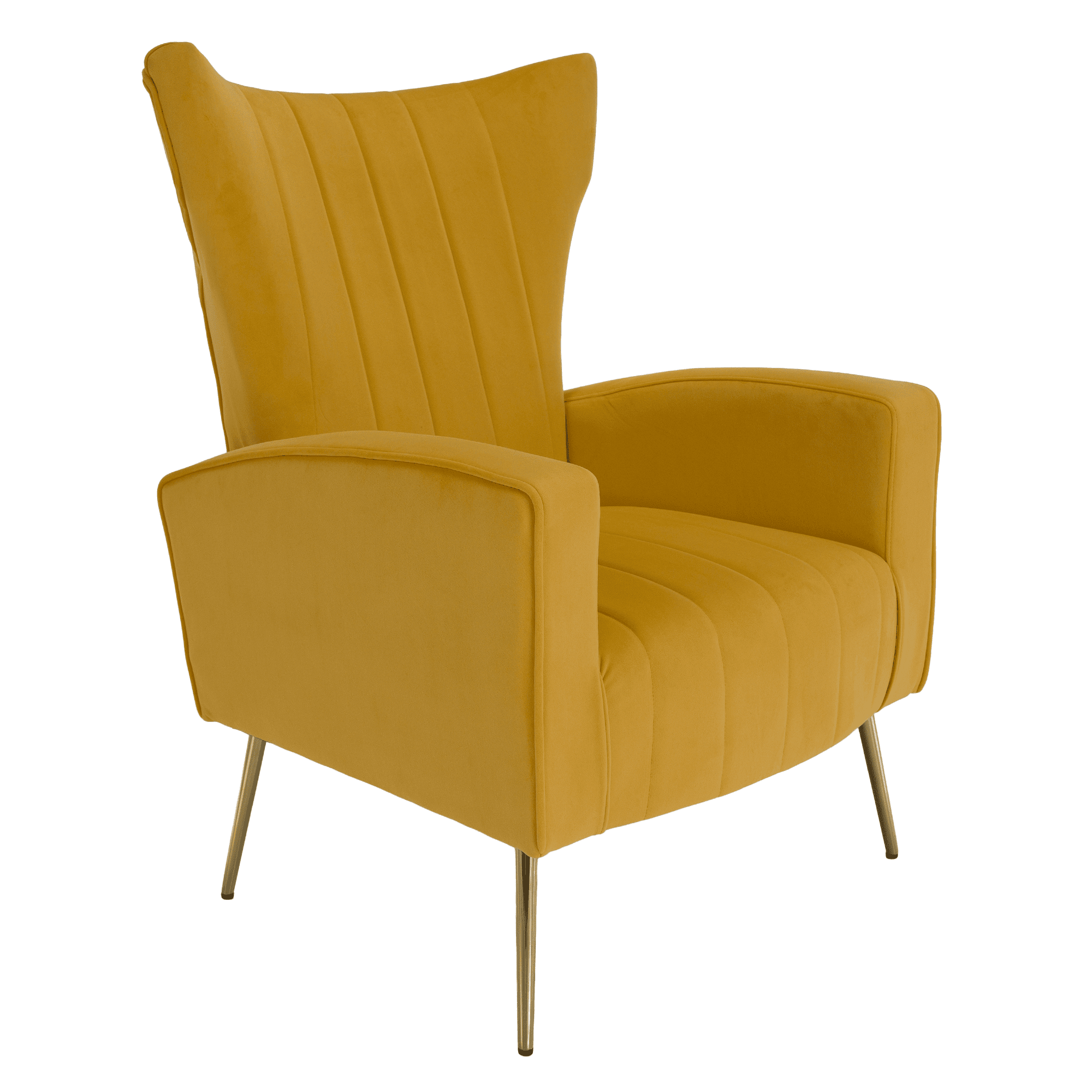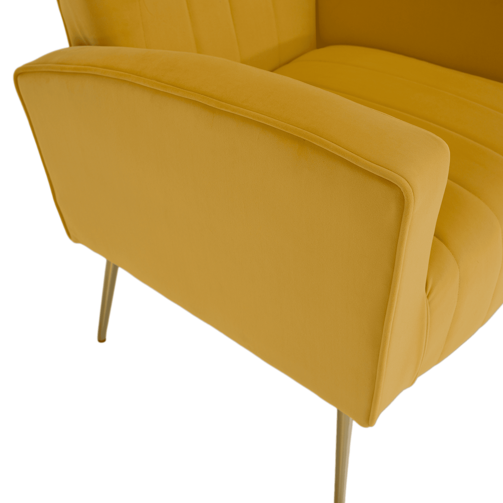 Material: ţesătură Velvet/pin/placaj/metal Rezistenţa ţesăturii la frecare conform testului Martindale: 75 000 de cicluri de frecare Culoare: galben Dimensiuni (lxAxh): 76x78x100 cm Înălţimea părţii de şedere: 44 cm Adâncimea părţii de şezut: 53 cm Lăţimea părţii de şezut: 51 cm Înălţime spătar: 56 cm Lăţime spătar: 71 cm Portanţă: 120 kg Umplutură: spumă standard (24kg/m3) Cusături decorative Complet tapiţat Design relaxant Confortabil Livrat dezasamblat