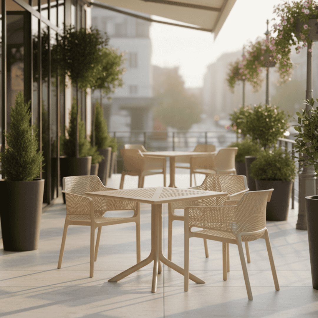 Material: plastic Culoare: gri maroniu Taupe Dimensiuni (lxAxh): 60x57x79 cm Înălţimea părţii de şezut: 45 cm Adâncimea părţii de şezut: 46 cm Lăţimea părţii de şezut: 48 cm Înălţime spate: 40 cm, Lăţime spate: 51 cm Portanţă: 100 kg Greutate: 5,3 kg De sufragerie Fotoliu de grădină Scaun Stivuibil, Potrivit atât pentru interior, cât şi pentru exterior, Livrat asamblat