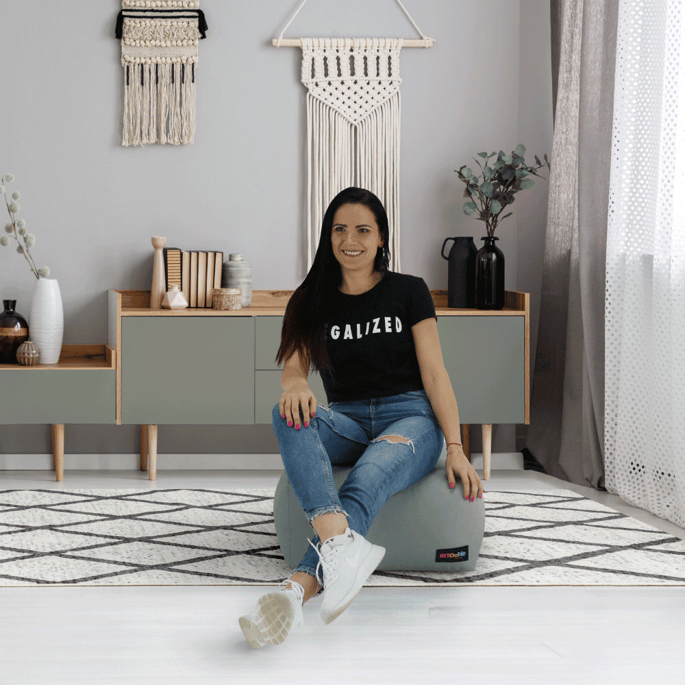 Fotoliu tip sac, gri/material textil verde, ALIMOR
