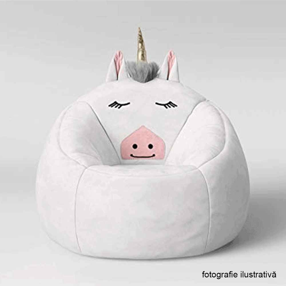 Fotoliu tip sac unicorn, alb, INOROG