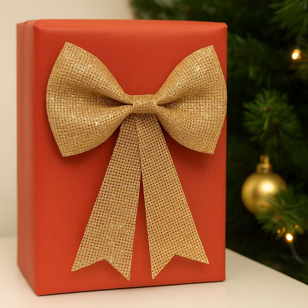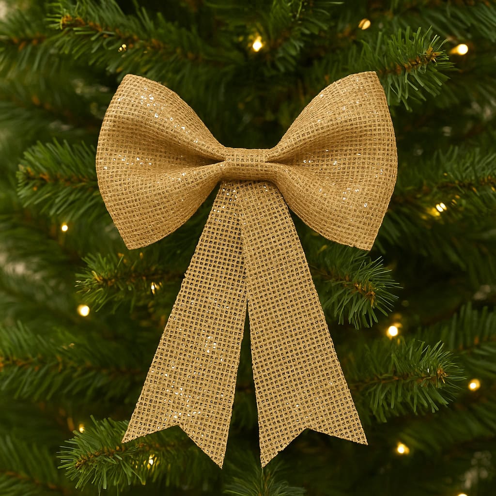 Specificatii tehnice Tip produs: Fundita decorativa Forma: Fundita Dimensiuni produs: 19 x 3 x 24 cm Culoare: Auriu Material: PVC Scurta descriere Fundita decorativa aurie cu paiete, realizata din PVC usor. Poate fi utilizata pentru decoratiuni festive, ambalaje de cadouri sau ornamente de sarbatoare. Caracteristici principale Design elegant cu paiete aurii Dimensiuni 19×24 cm Material usor PVC Potrivita pentru decoruri festive Usor de atasat la diverse aranjamente