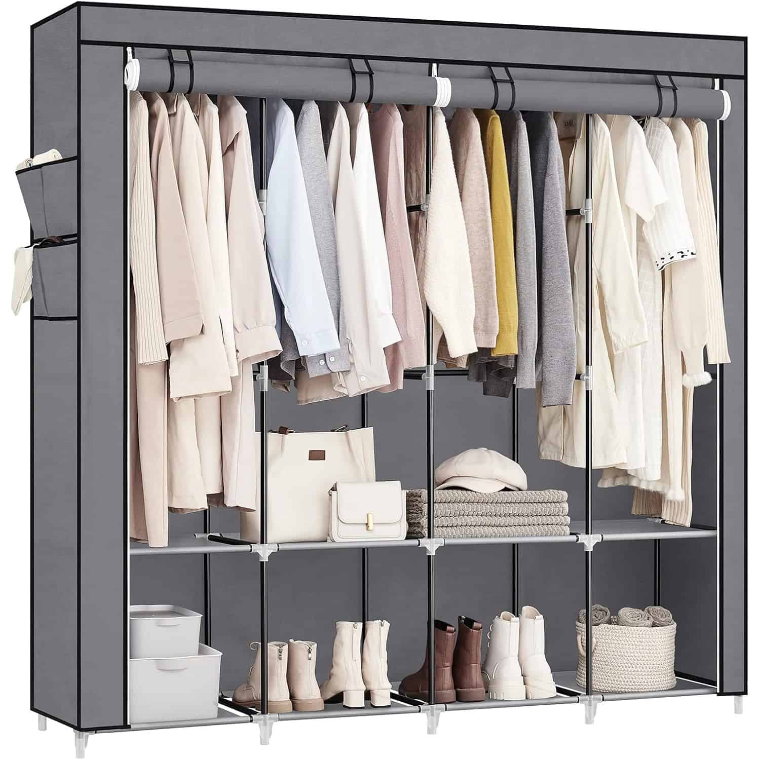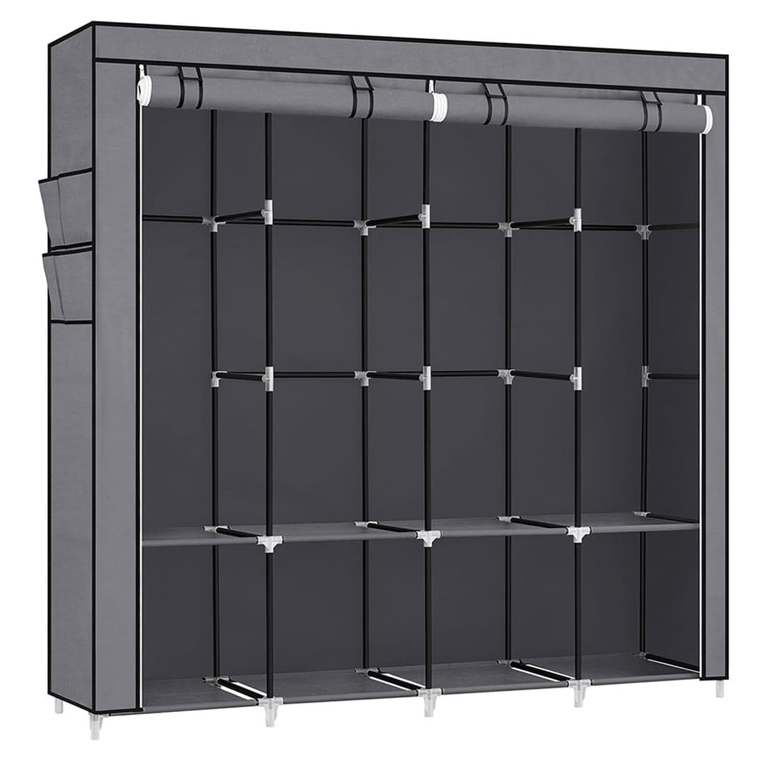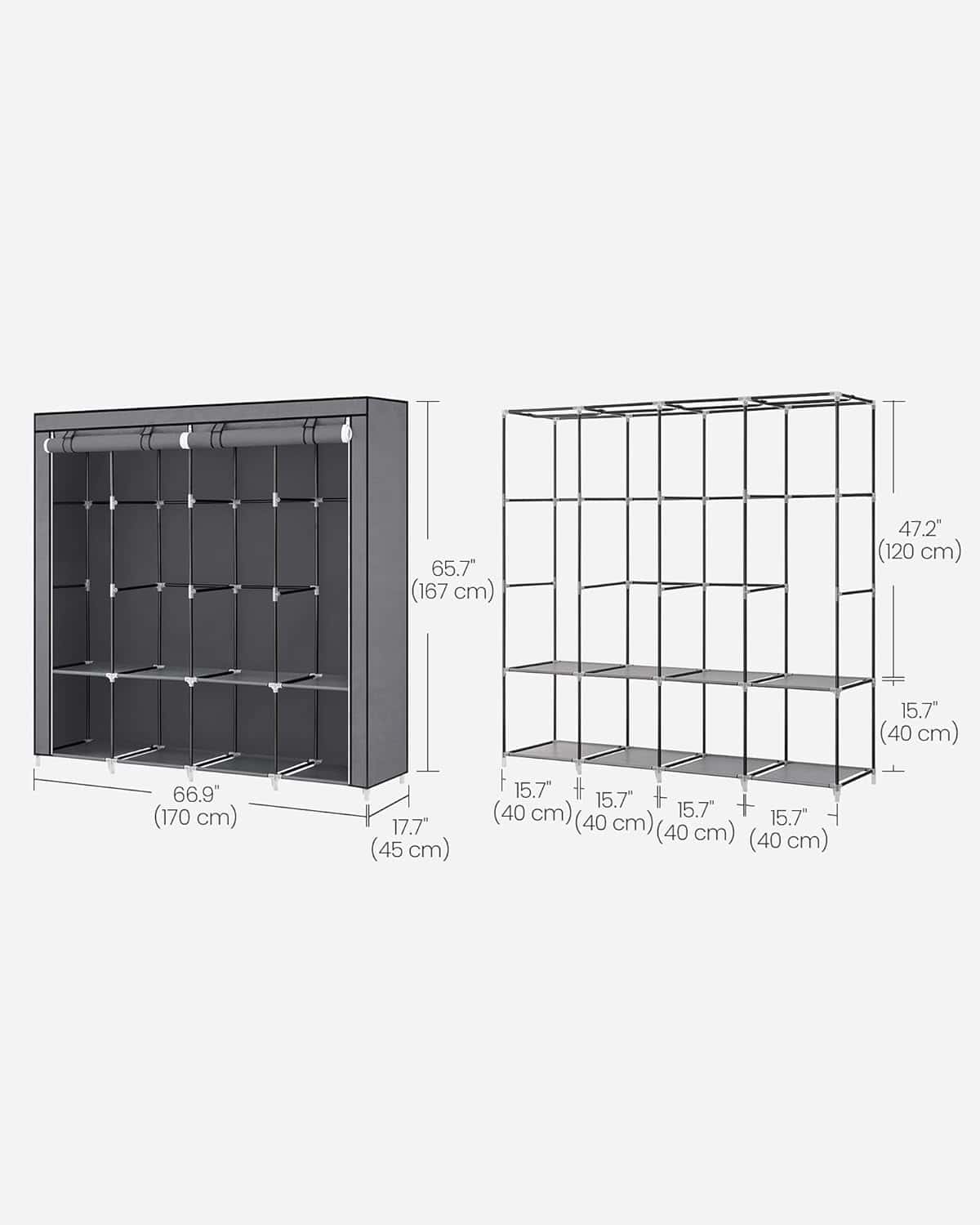 Garderoba din material textil, dulap portabil, cu rafturi si sina de agatat, 170x45x167cm, gri Mob360