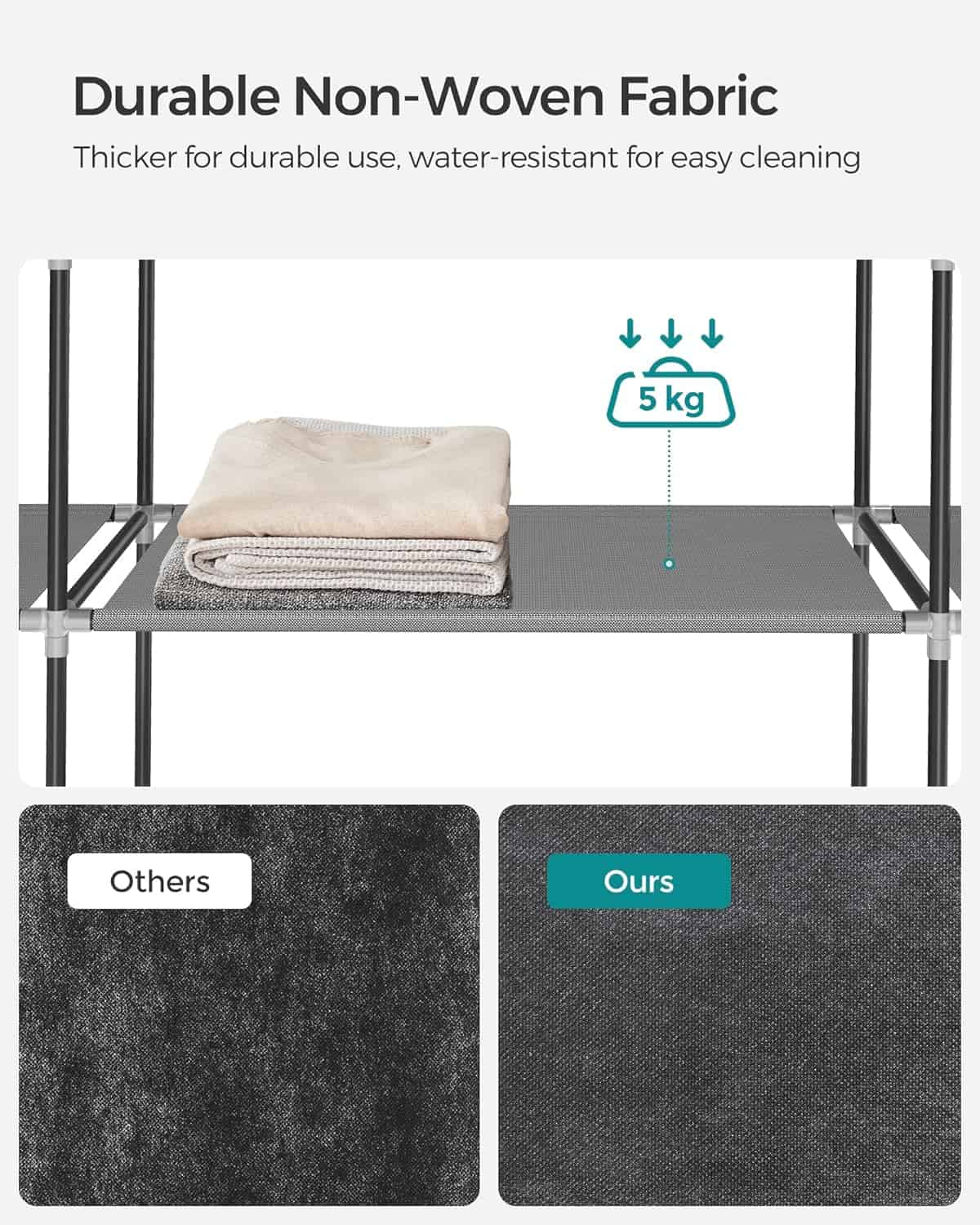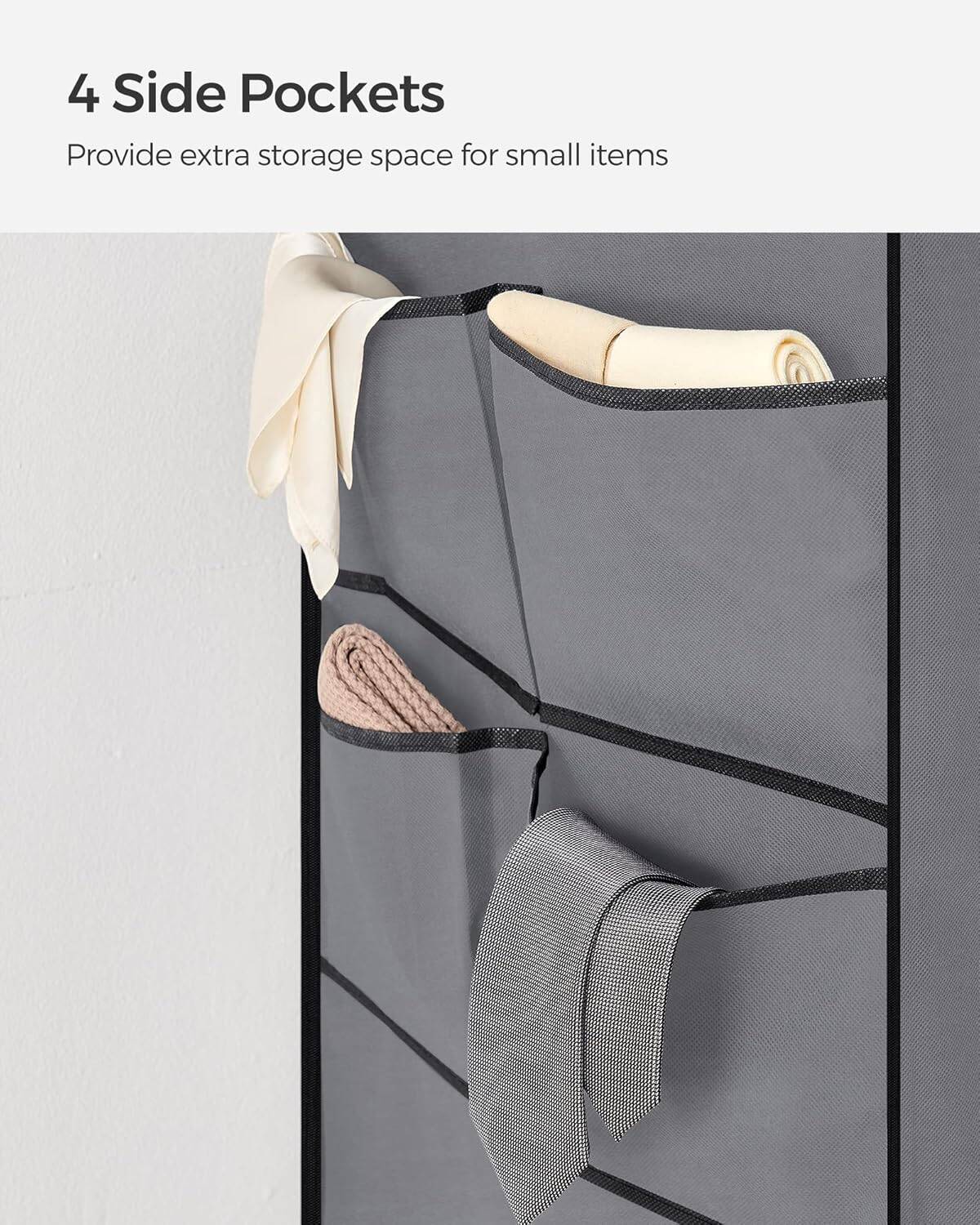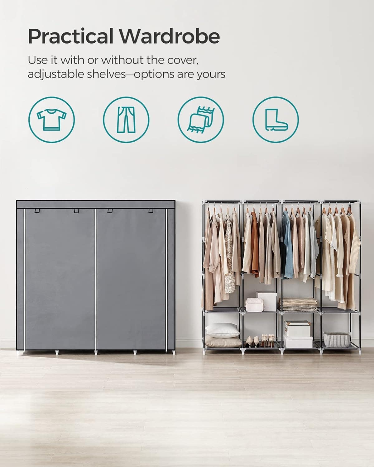Garderoba din material textil, dulap portabil, cu rafturi si sina de agatat, 170x45x167cm, gri Mob360