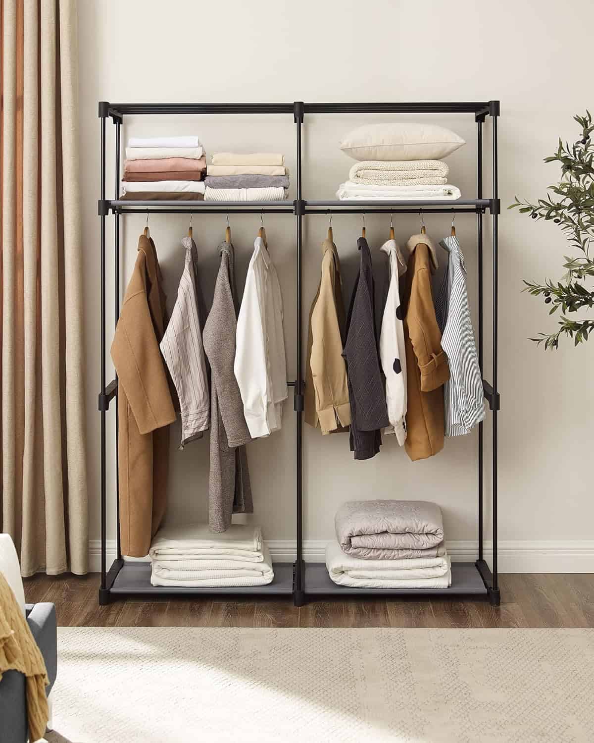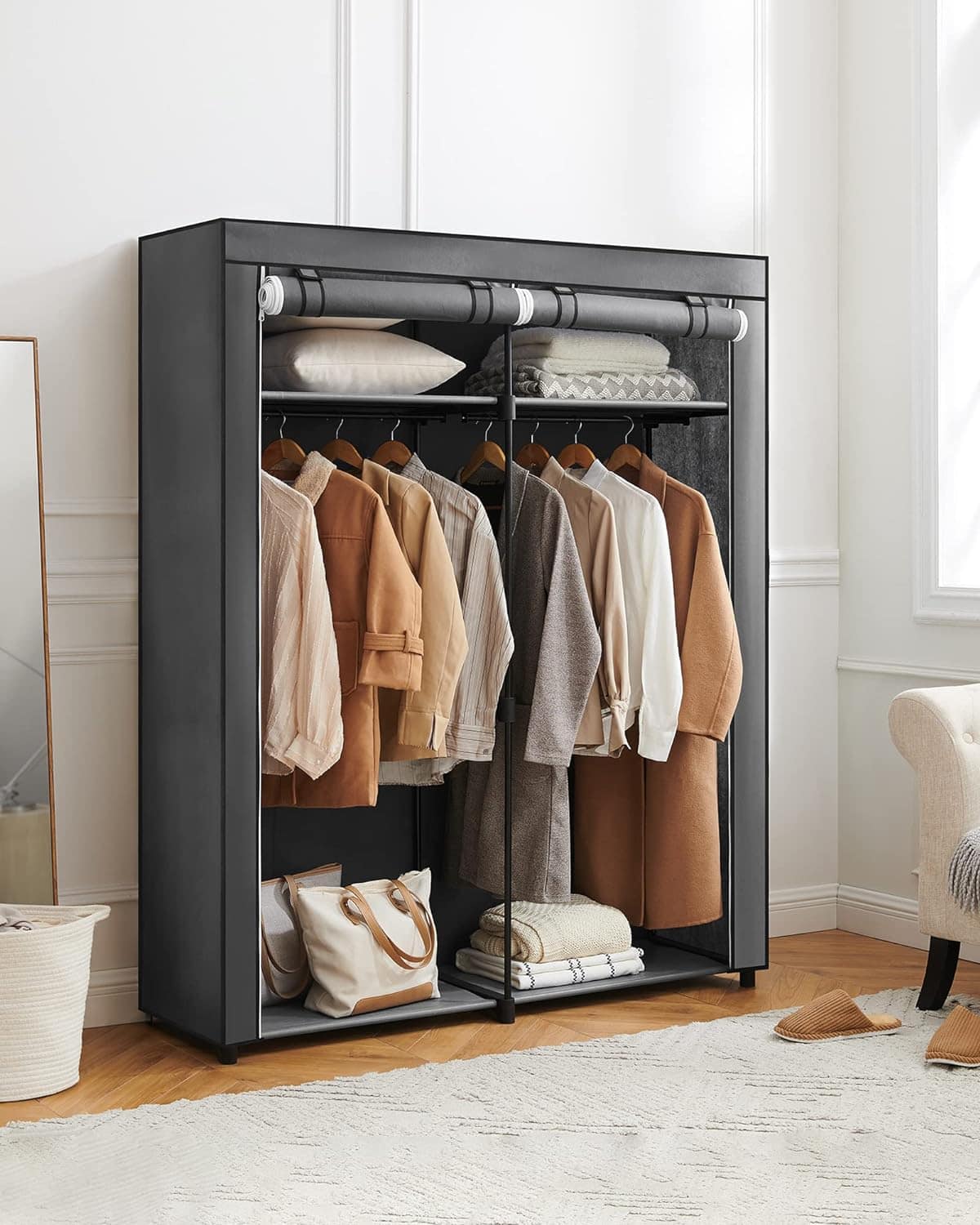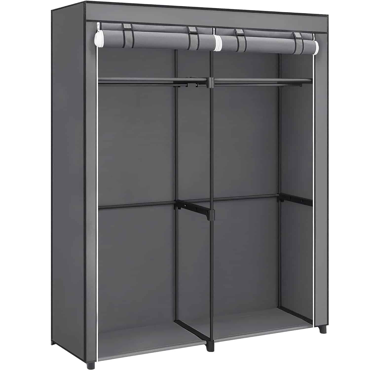 Garderoba pentru depozitarea hainelor, din material textil, cu 2 bare pentru umerase, 43x140x174cm, gri Mob360 – produs disponibil în magazinul Mob360.