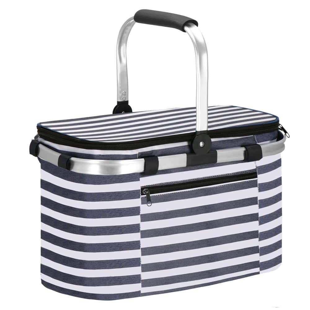 Geanta pentru picnic sau plaja, termoizolanta, 28 litri, alb albastru Mob360