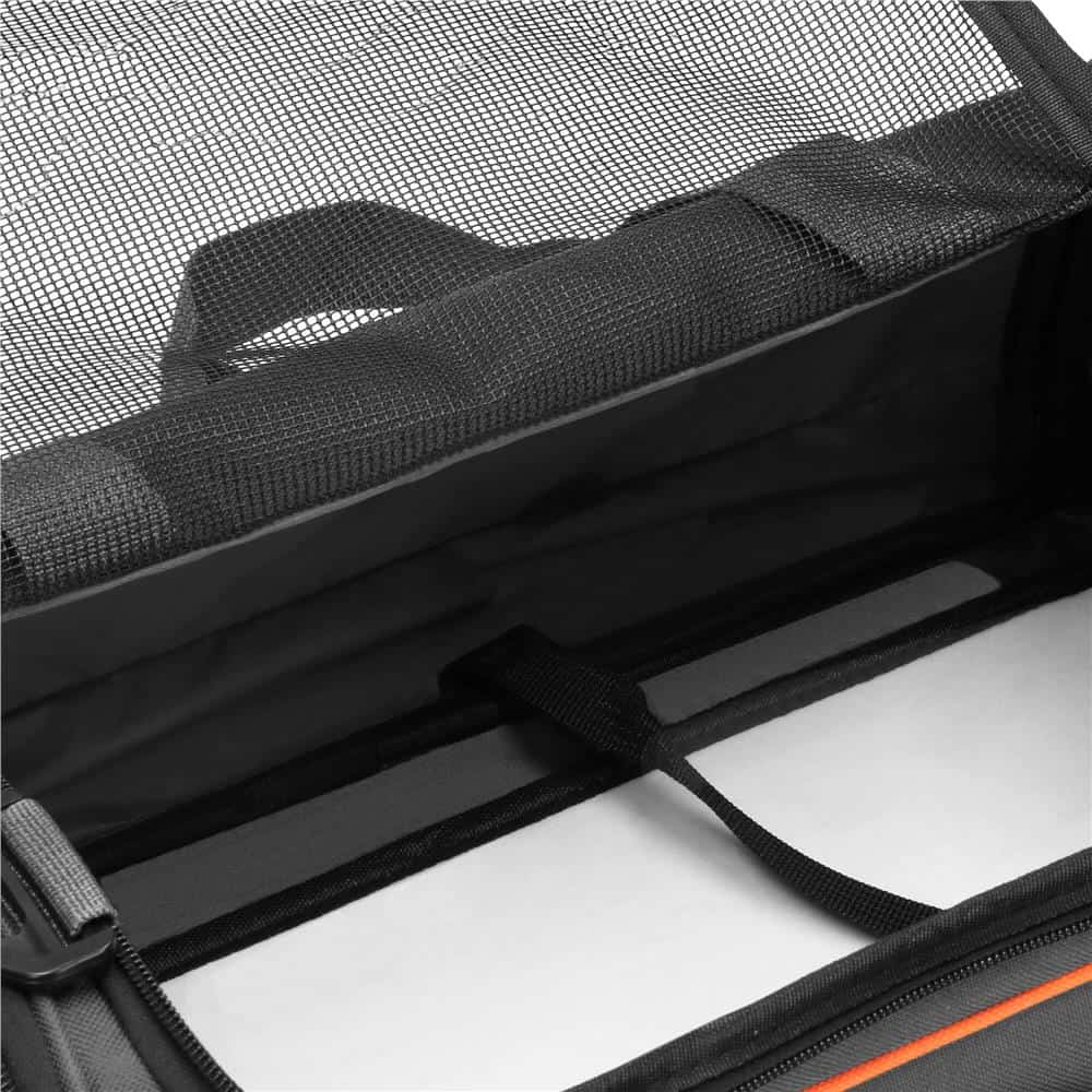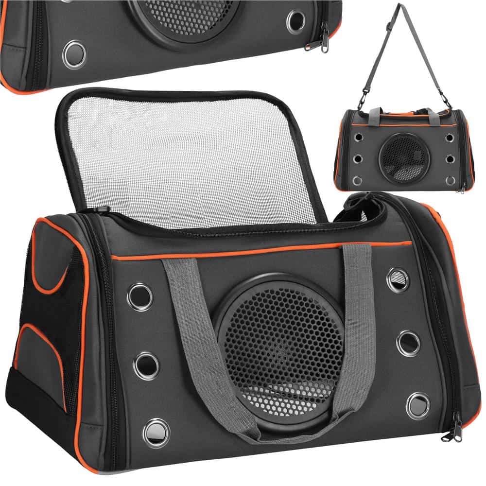 Culoare: nuante de gri, negru, portocaliu Material: poliester Sarcina maxima: 12 kg Marime: M Dimensiuni: 24 x 48 x 33 cm Manere + curea de umar Pliabil: da Fiecarui proprietar de animale de companie ii pasa de confortul si siguranta acestora. De asemenea, este bine cunoscut faptul ca animalele domestice calatoresc uneori cu noi sau necesita vizite la veterinar, iar uneori trebuie pur si simplu sa fie izolate de ceilalti, de exemplu, dupa o interventie chirurgicala sau in timpul bolii. Prin urmare, un suport usor si practic pentru animale de companie este un accesoriu esential pentru proprietarii de animale mai mici, cum ar fi caini, pisici, iepuri sau rozatoare. Un mare avantaj al suportului este posibilitatea de pliere – este format din piese conectate cu fermoar . Pentru a asambla suportul, peretii laterali trebuie fixati impreuna direct, iar elementele ramase ale suportului se potrivesc in interior intre ele – datorita acestui lucru, va ocupa foarte putin spatiu! Gaurile de ventilatie ofera animalului dvs. un sentiment de confort ridicat – ceea ce este extrem de important pentru micutii bolnavi. Acestia vor putea calatori in liniste si confort, usurandu-le sederea departe de casa, care este destul de stresanta pentru micii nostri prieteni.