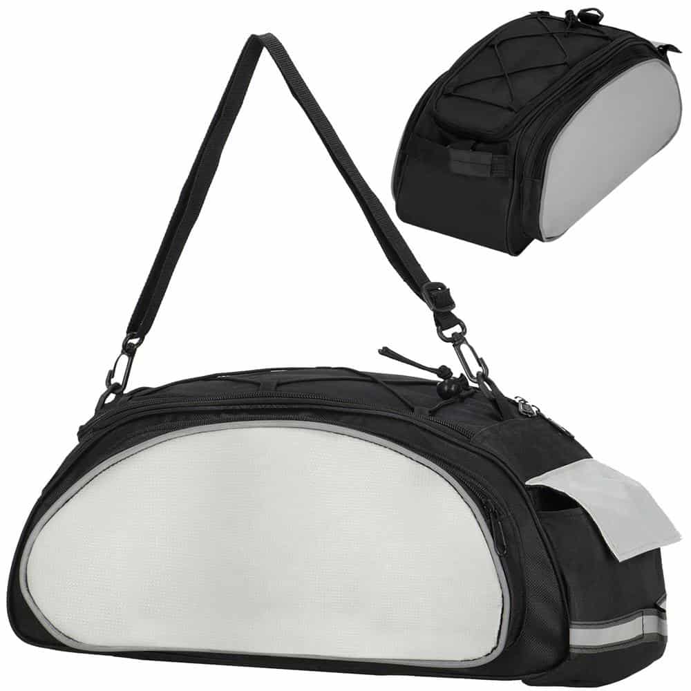 Geanta portbagaj bicicleta, 1 compartiment si 3 buzunare laterale, 40x20x17cm, negru cu elemente reflectorizante gri Mob360