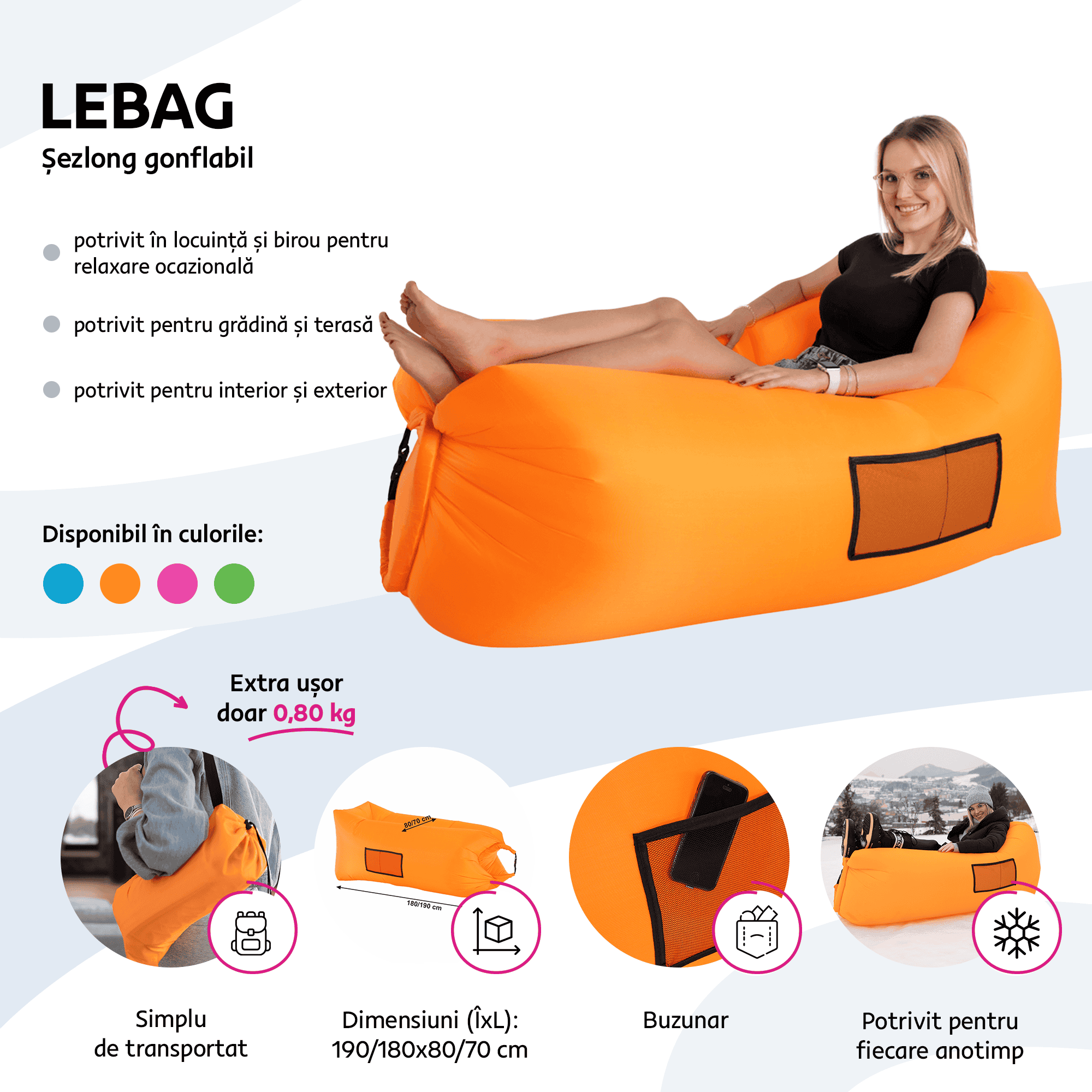 | Tipul mobilierului | Geantă scaun gonflabilă |