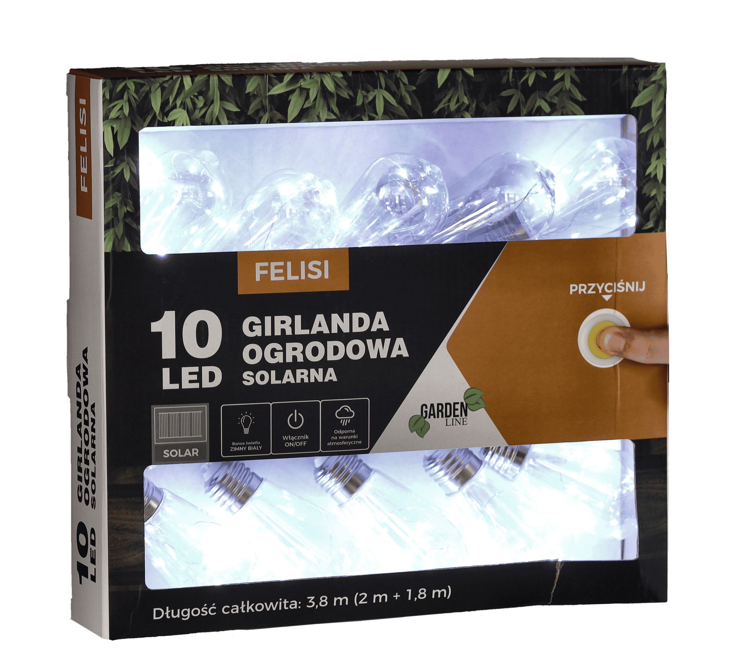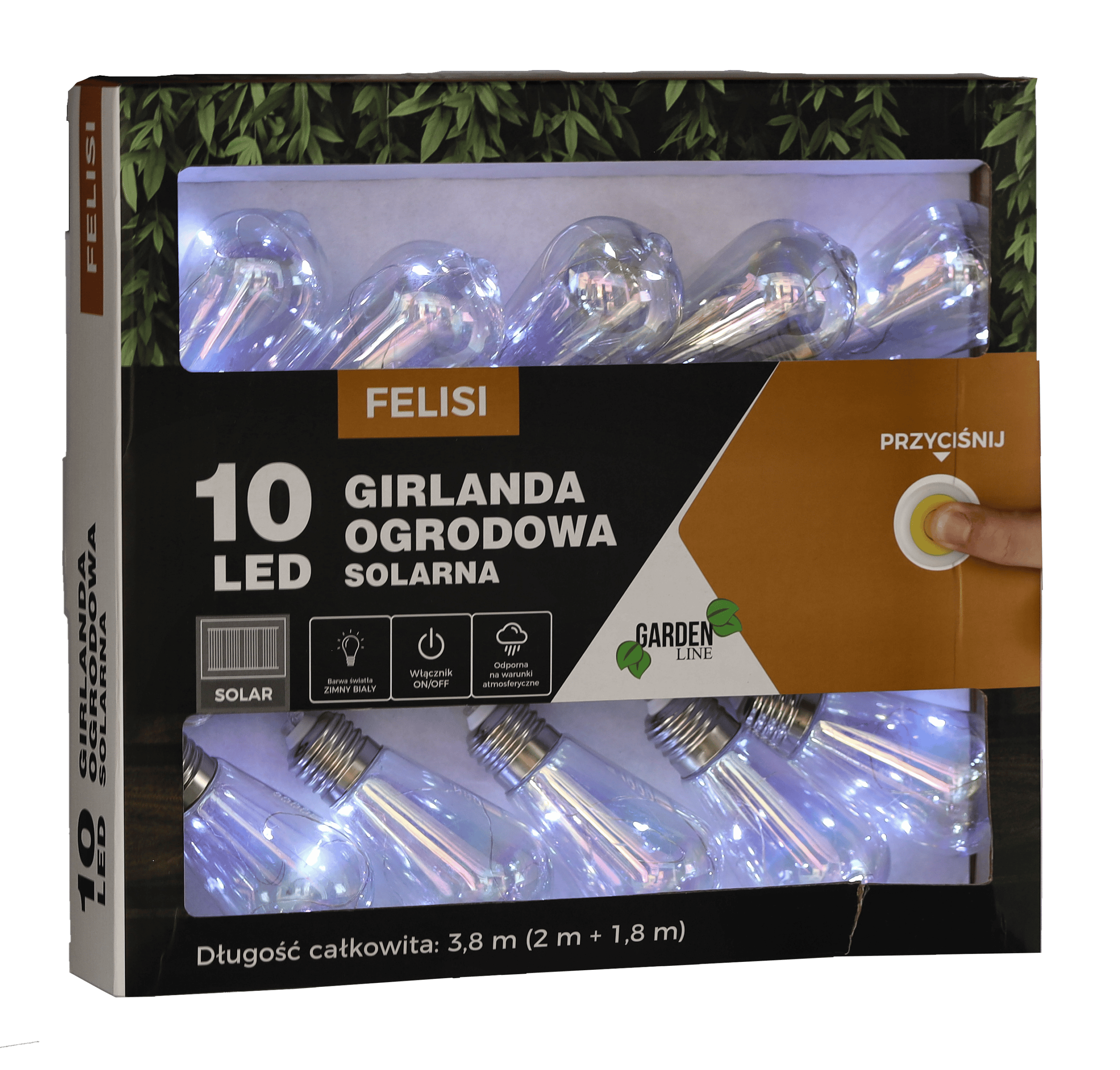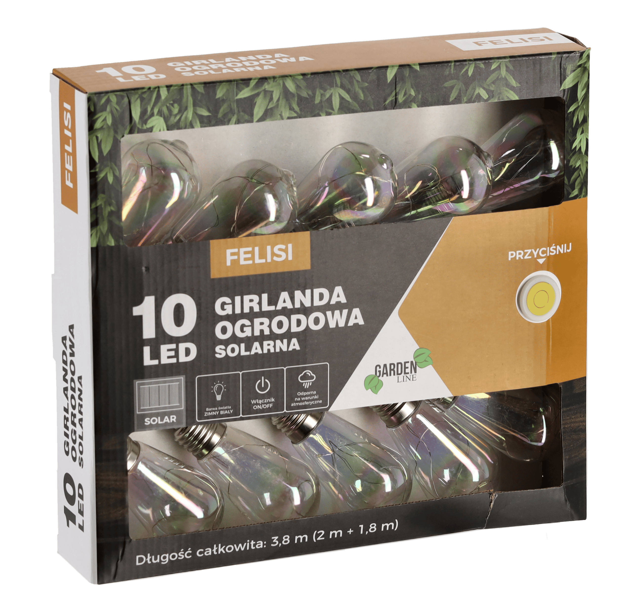 Ghirlanda luminoasa, LED, model Felisi, 10 becuri, 380cm, incarcare solara, lumina alb multicolor Mob360