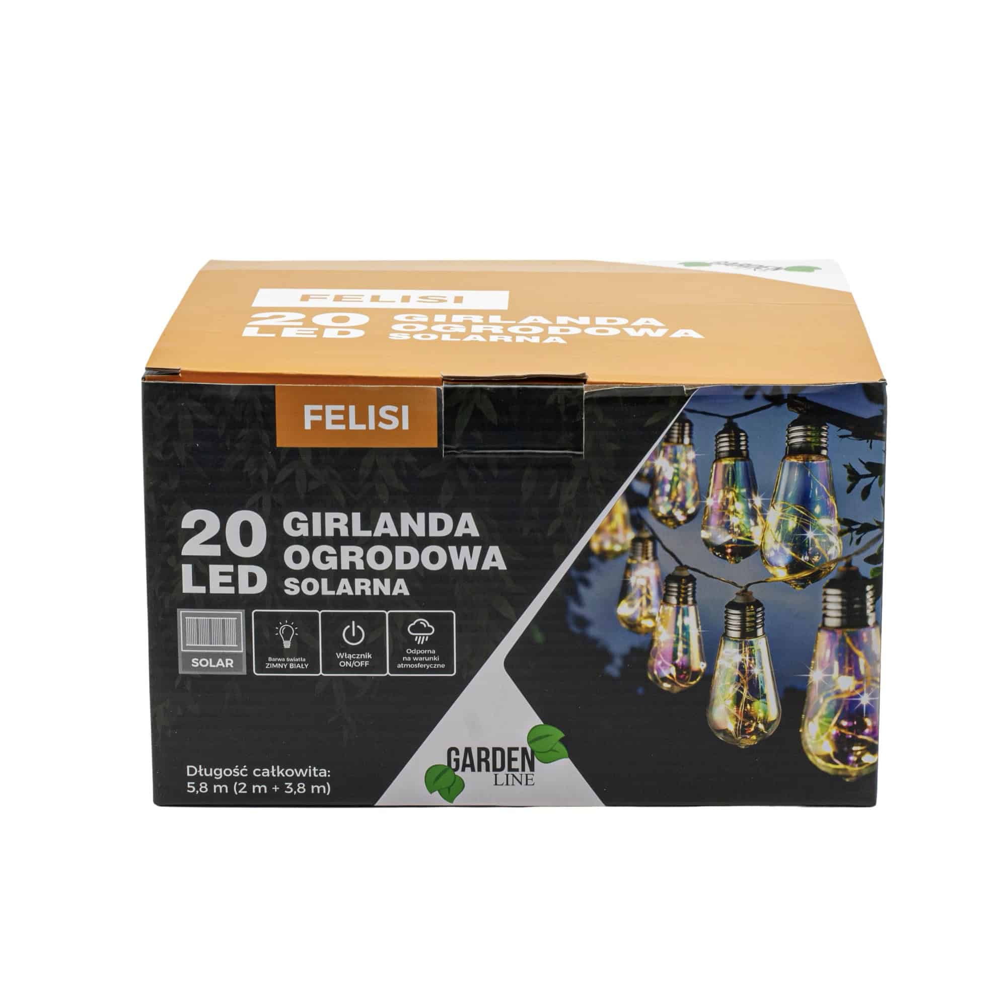 20 buc becuri solare Lungimea cablului: 5,8 m Culoare: alba rece. Lungime totala: 5,8 m (400cm + 180cm cablu alimentare) Utilizarea unei lampi solare asigura cantitatea potrivita de lumina la intrarea in casa, garaj, subsol sau orice alt loc in care vizibilitatea este limitata semnificativ dupa apusul soarelui, de exemplu o gradina. Ghirlandele sunt un element minunat al oricarei seri de atmosfera. Ghirlandele schimba atmosfera locului de indata ce incep sa straluceasca cu lumina lor calda si blanda. Lampa este destinata utilizarii in aer liber si trebuie expusa la lumina soarelui in timpul zilei pentru a incarca eficient bateria.Este realizat din material durabil, ceea ce contribuie la durabilitate si viata lunga. Culoarea lampilor si forma interesanta se potrivesc perfect atat in interioarele moderne, cat si in cele clasice. Ele creeaza o armonie extraordinara de lumina.In plus fata de avantajul sau practic incontestabil, cu siguranta va face mai atractiva petrecerea timpului in aer liber cu familia, prietenii sau singuri.