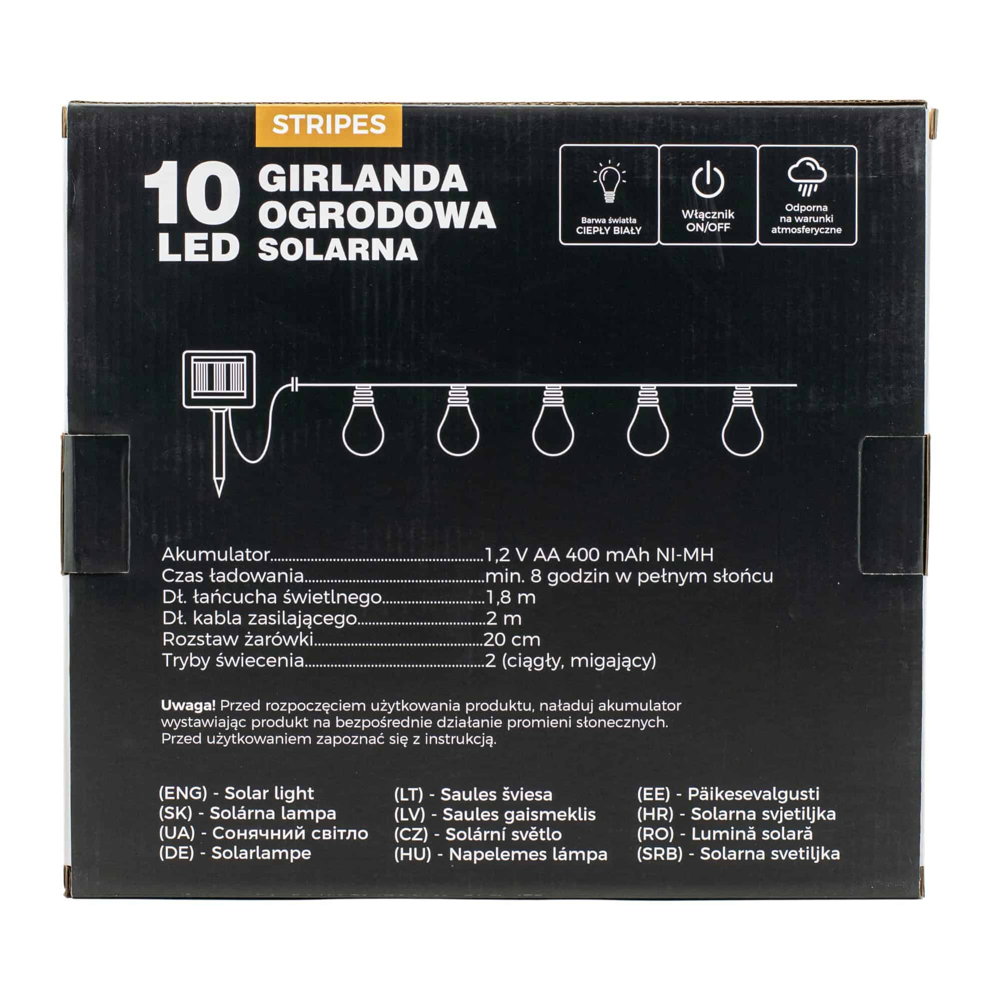 Ghirlanda luminoasa, LED, model Stripes, 10 becuri, 380cm, incarcare solara, lumina alb cald Mob360