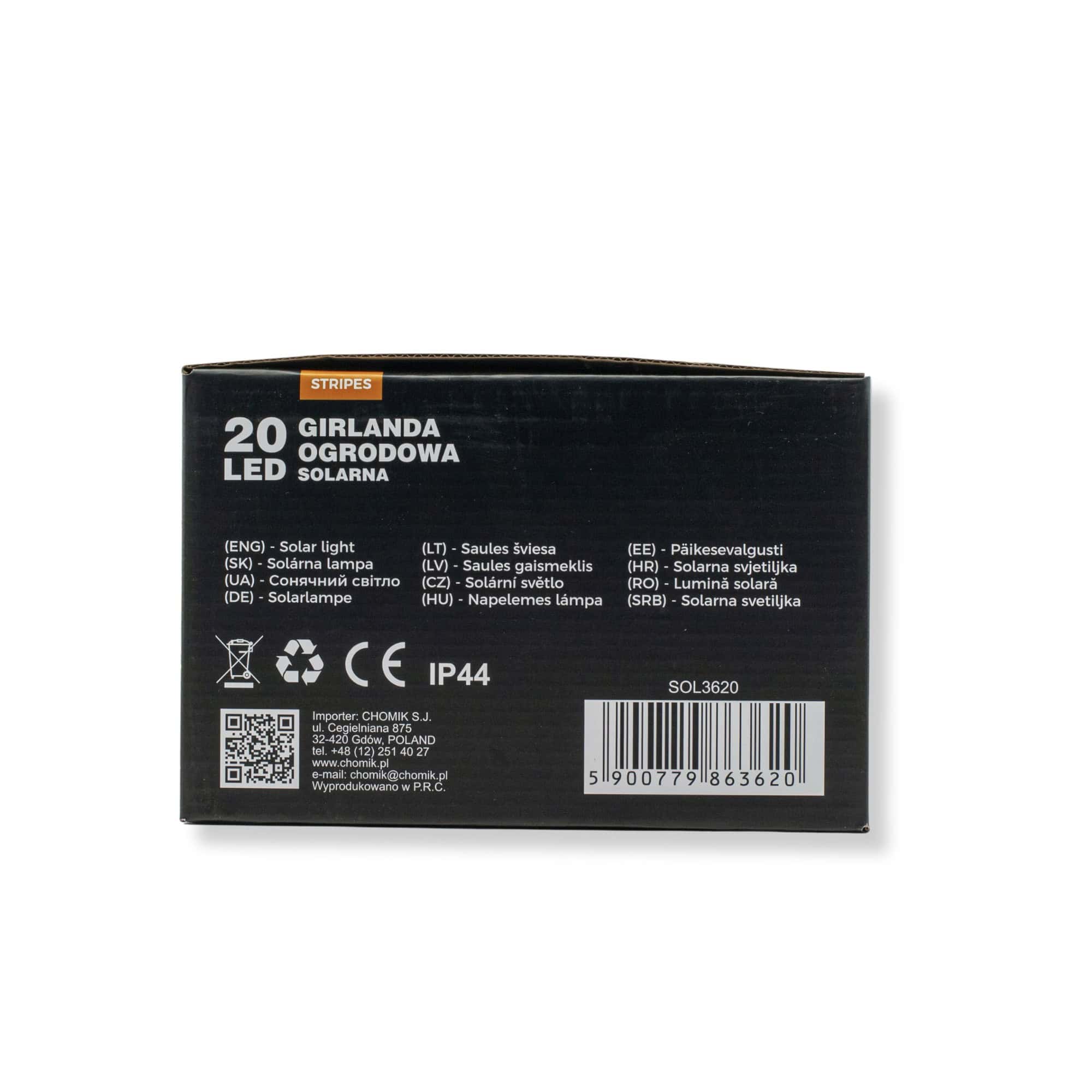 Ghirlanda luminoasa, LED, model Stripes, 20 becuri, 580cm, incarcare solara, lumina alb cald Mob360 – produs disponibil în magazinul Mob360.