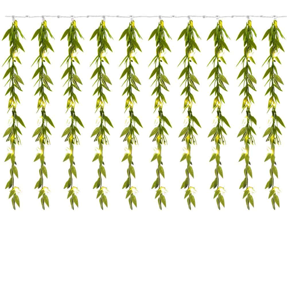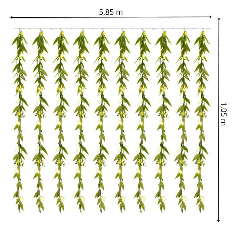 Ghirlanda luminoasa tip perdea de frunze artificiale, 285x105cm, 200 LED-uri, alb cald Mob360