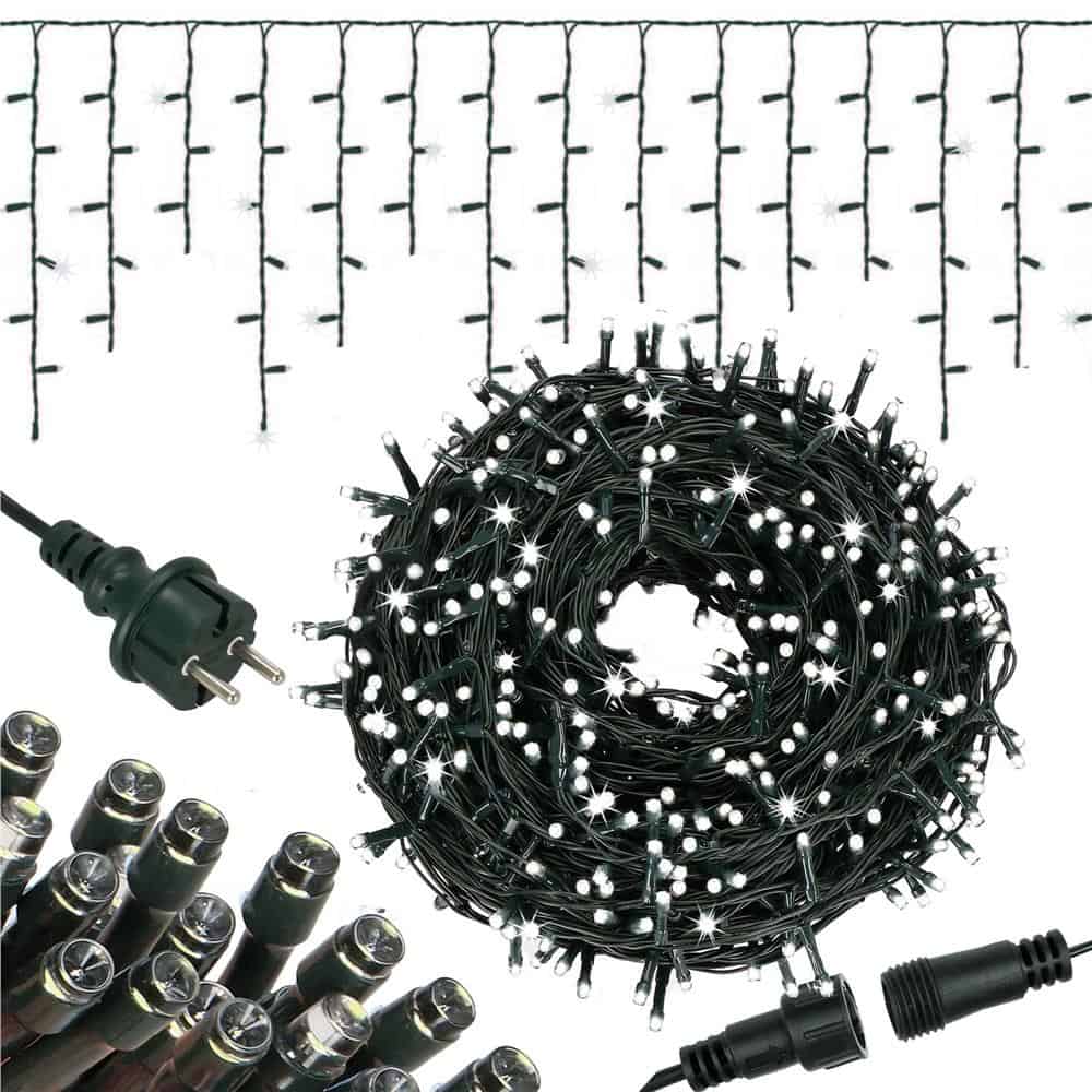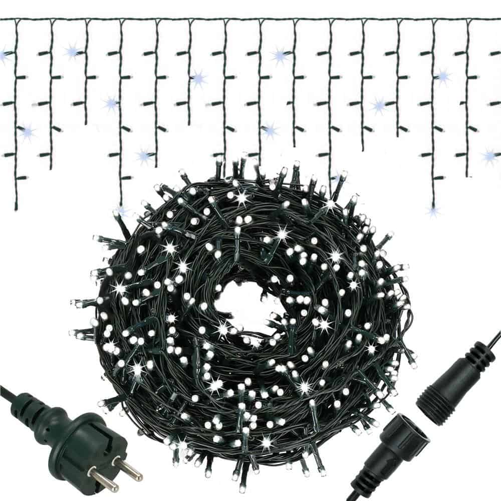 Perdeaua de lumina de gheata este una dintre cele mai frumoase decoratiuni de Craciun. Acestea vor fi decorul perfect pentru hol, balcon sau gard. Lampile creeaza o atmosfera unica de Craciun. Principalul avantaj este calitatea inalta a manoperei si durabilitatea produsului. Lampile sunt compatibile, ceea ce inseamna ca le puteti combina in seturi. Seturile cu telecomanda pot fi combinate cu seturile fara telecomanda. Un programator poate opera mai multe seturi. Conectorii ermetici au clasa de etansare IP44, ceea ce inseamna ca sunt adaptati pentru utilizare in exterior fara a fi nevoie de izolatie suplimentara. Butonul controlerului este sigilat, cauciucat. Firul gros de cupru este rezistent la rupere sau la temperaturi scazute. PARAMETRII: Culoarea LED-ului: alb rece + flash alb receCuloarea cablului si a fisei: verde inchisNumarul de LED-uri: 300 Putere: 18W Alimentare electrica 220 – 240 V, 50/60 HzClasa de protectie: IP 44Posibilitatea de a conecta pana la 3 seturi suplimentareAplicatie: interior / exteriorCE , certificat RoHS DIMENSIUNI: lungime totala: 14,5 mlungimea partii iluminante: 12 mcablu de alimentare: 2,5 mSpatierea LED-urilor: la fiecare 10 cmlungimi de gheata: 40, 50, 70 cm