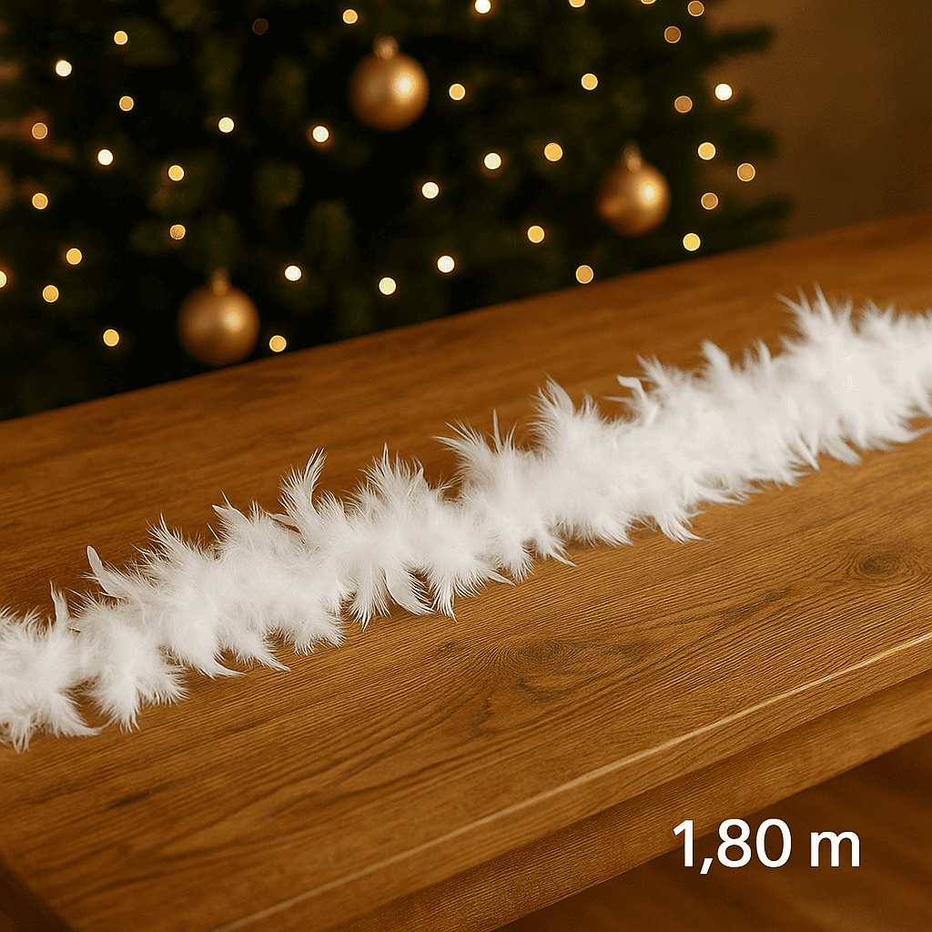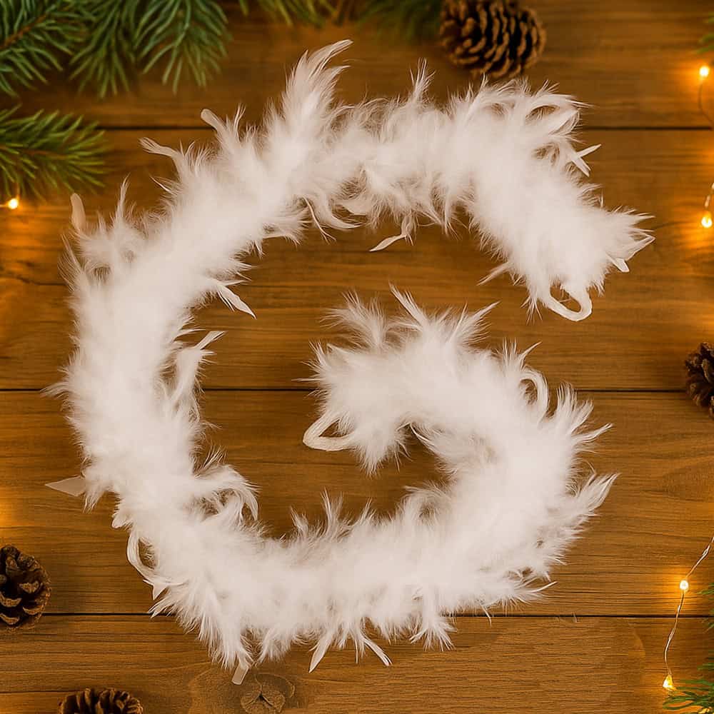Ghirlanda pentru decor sau bradul de Craciun, model puf si pene, 180cm, alb Mob360
