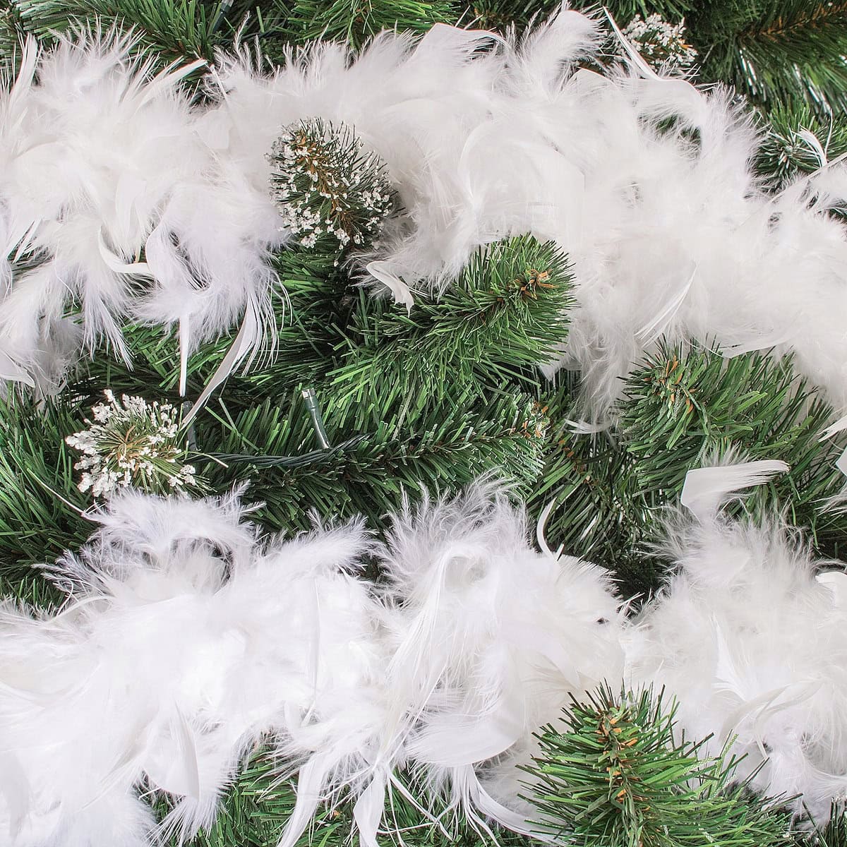 Ghirlanda pentru decor sau bradul de Craciun, model puf si pene, alba, 600cm Mob360