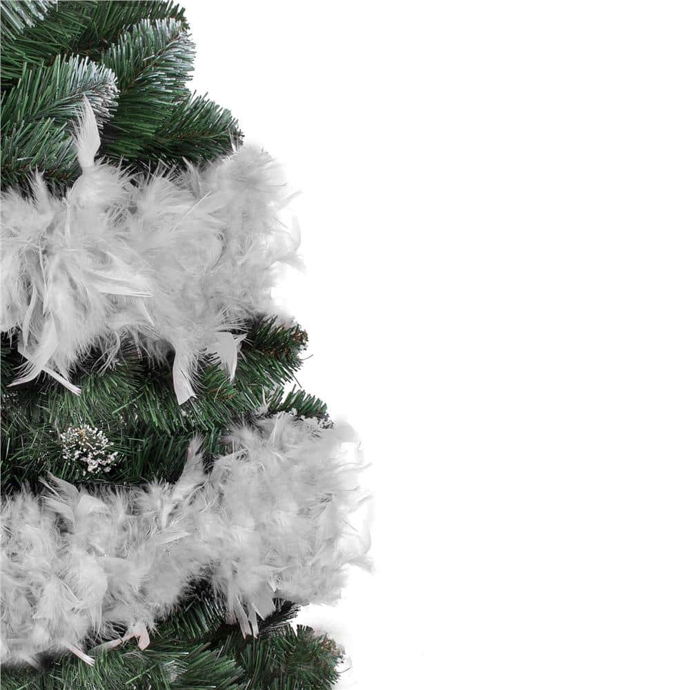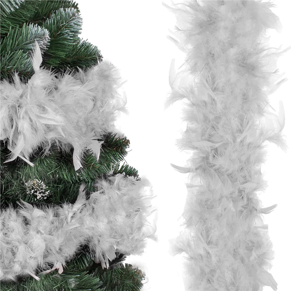 Ghirlanda pentru decor sau bradul de Craciun, model puf si pene, gri, 180cm Mob360