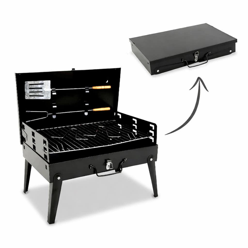 Gratar portabil pliabil tip valiza pentru camping, cu accesorii de gratar incluse, 45x30x30 cm Mob360