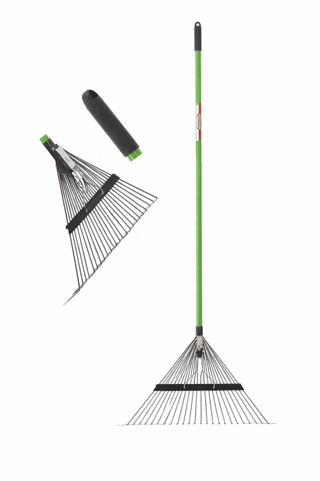 Grebla gradina pentru frunze cu dinti reglabili, maner fibra de sticla 150 cm, cap din otel, 58x40x150 cm, verde Mob360