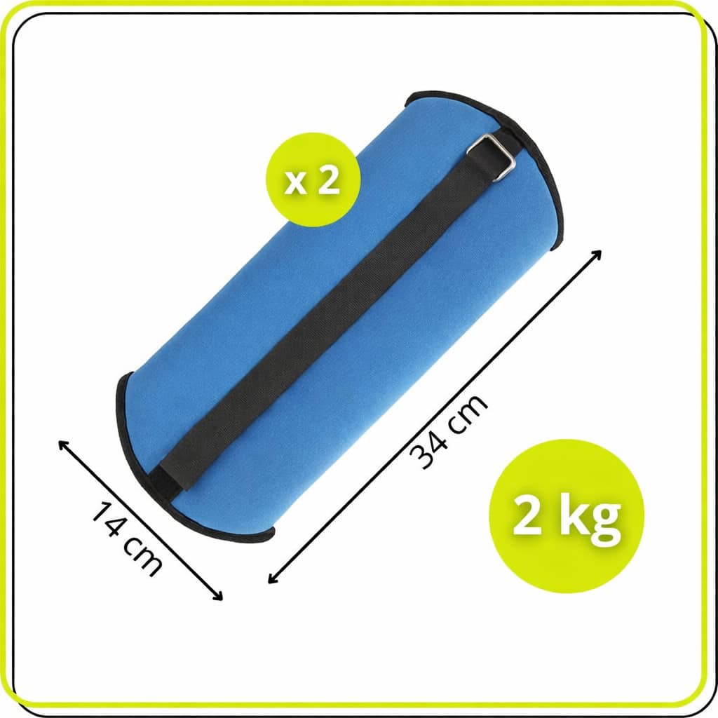 Greutati pentru incheietura mainii si glezna 2×2 kg, neopren si nisip fier, 34×14 cm, albastru Mob360