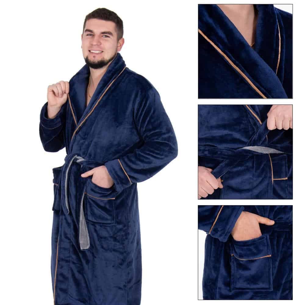 Halat de baie pentru barbati pana la genunchi, marimea XXL, albastru marin Mob360 – produs disponibil în magazinul Mob360.