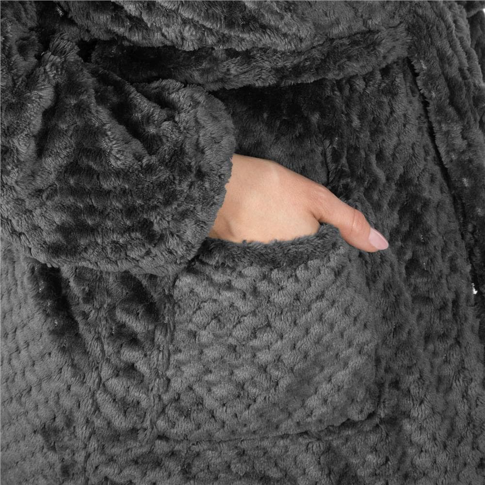 Halat de baie pentru femei pana la genunchi, cu gluga, marimea L/XL, gri inchis Mob360