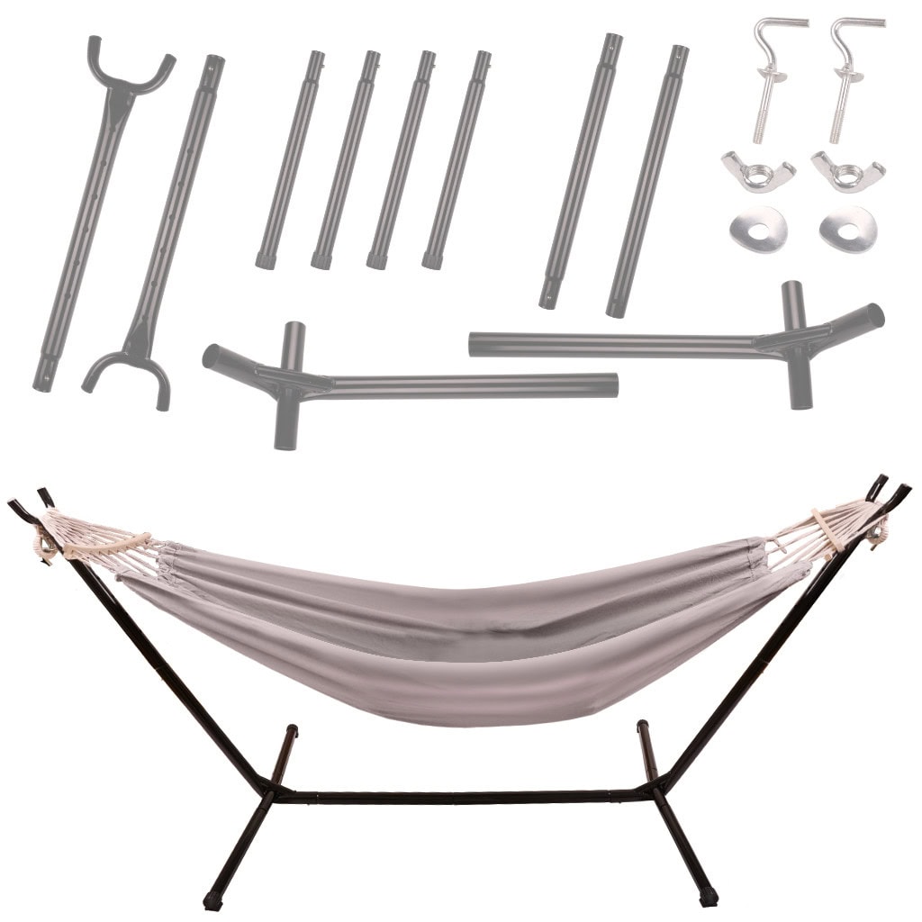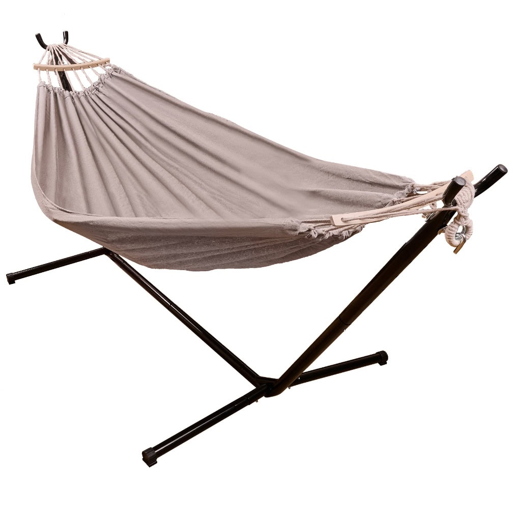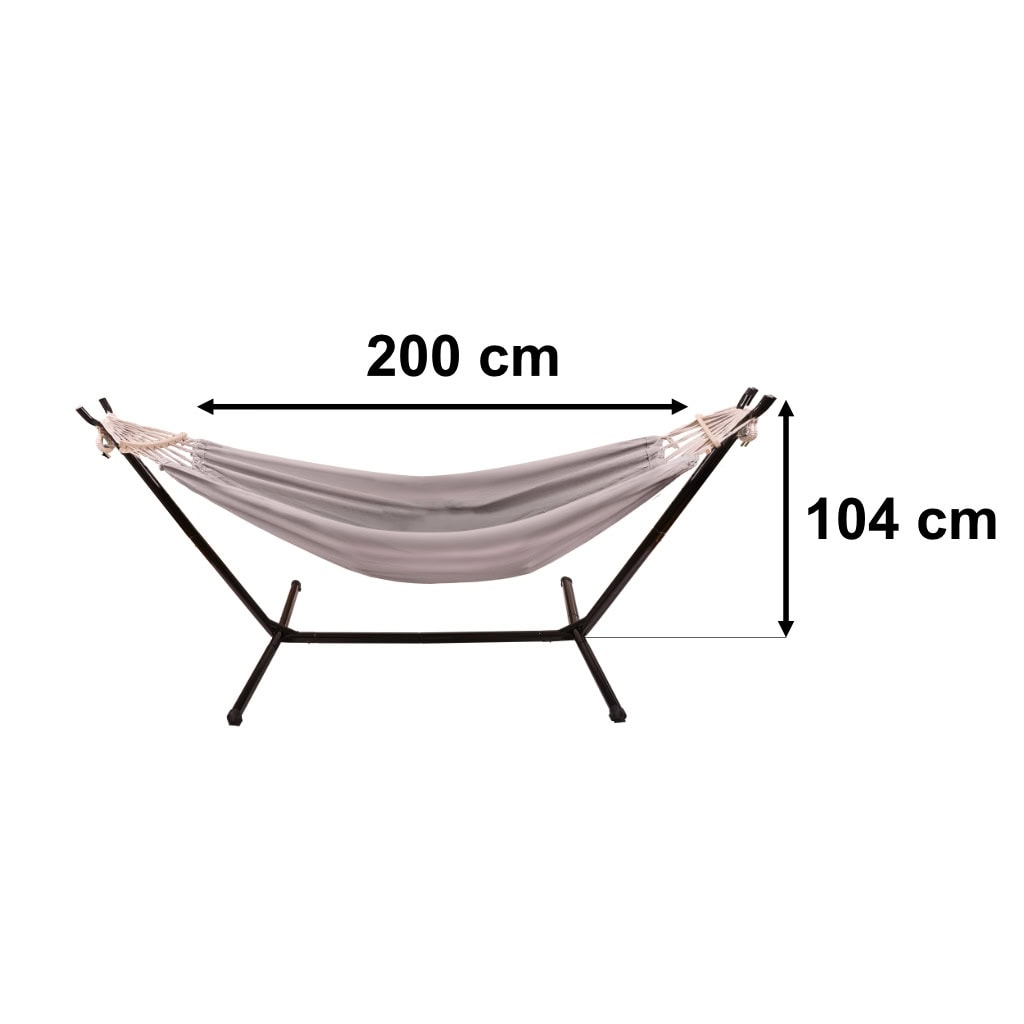 Hamac cu suport metalic, material textil 210×153 cm, cadru 247x133x104 cm, negru si gri Mob360