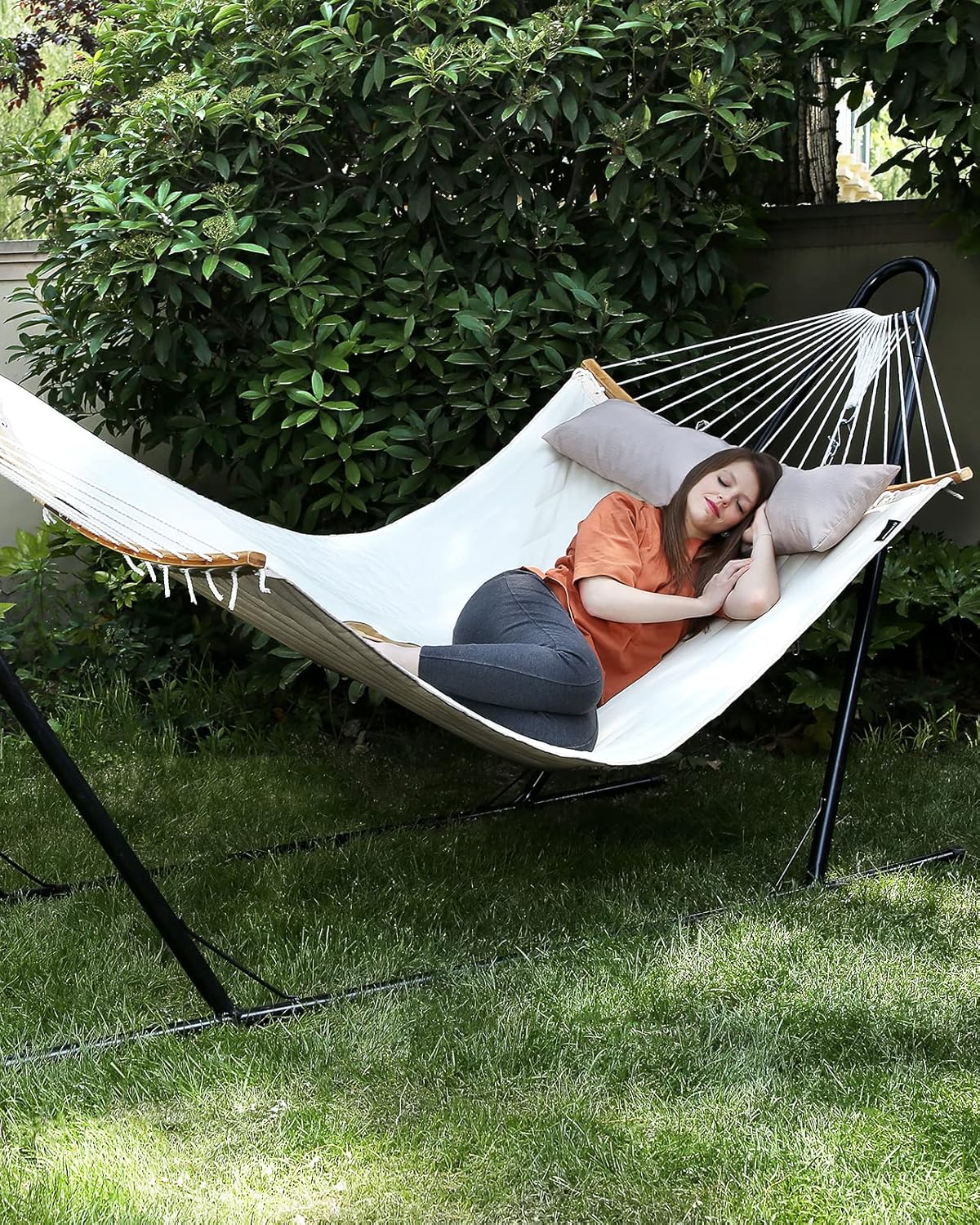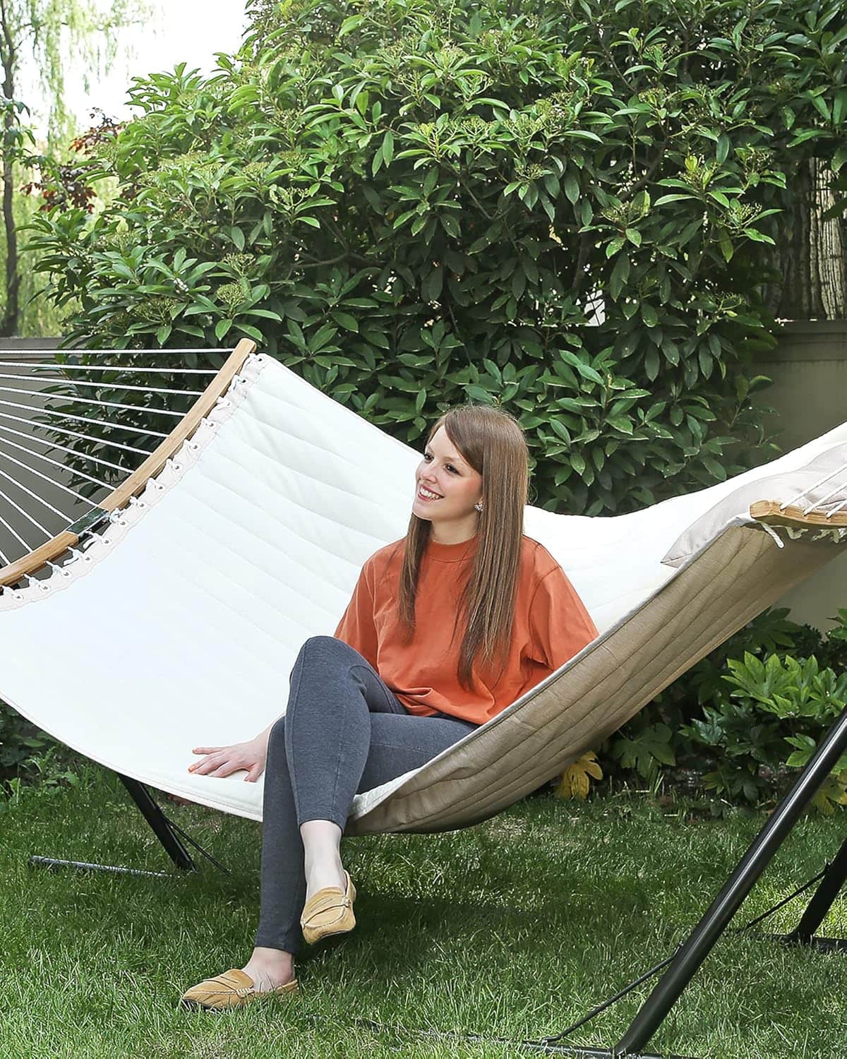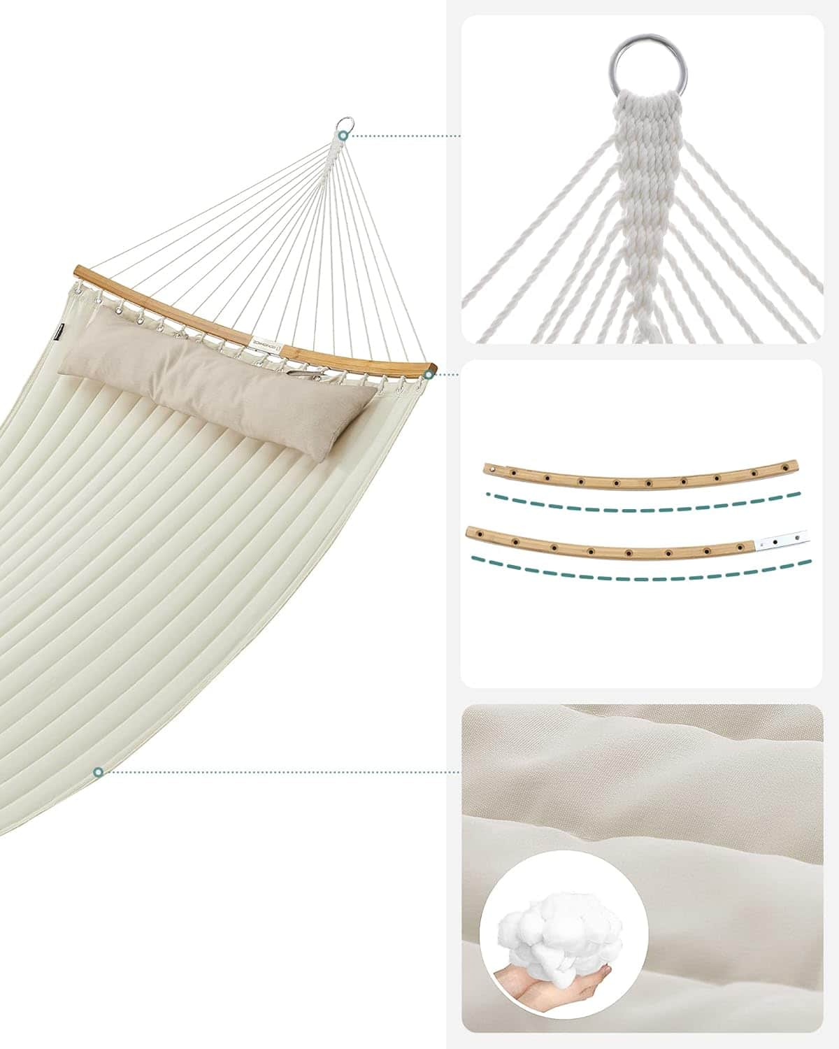 Hamac dublu cu bare curbate din bambus, perna inclusa, maxim 225 kg, 200×140 cm, crem Mob360