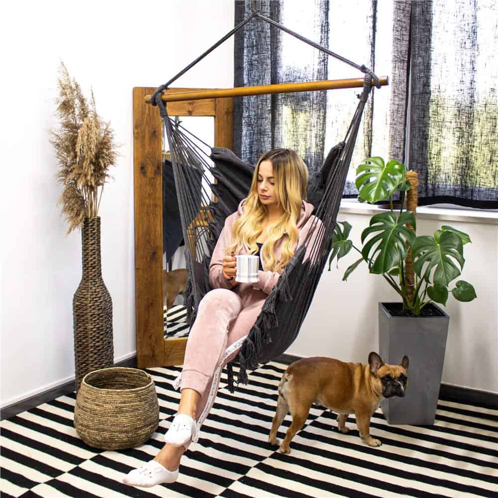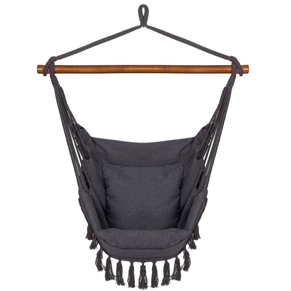 Hamac tip leagan suspendat pentru casa sau gradina HM45, gri inchis cu perne, 130x100cm, 150kg Mob360 – produs disponibil în magazinul Mob360.